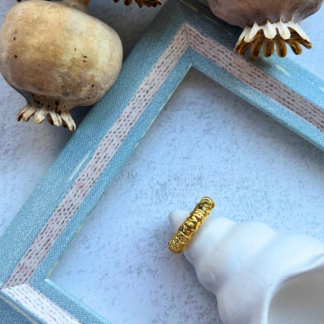Altın Kabartma Desenli Yüzük I Me'VintAge Collection