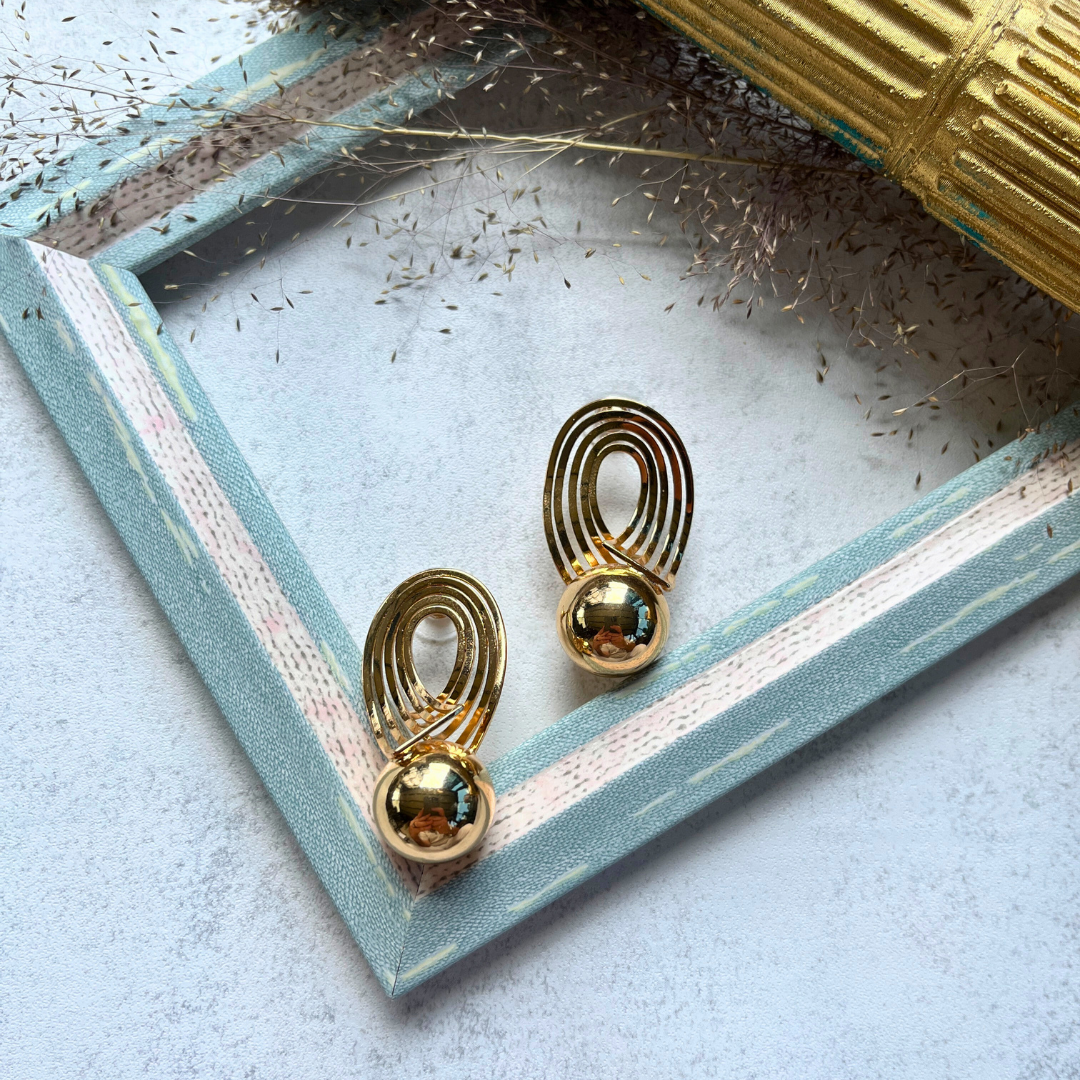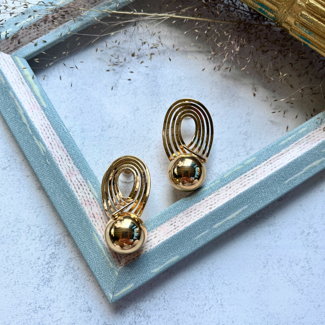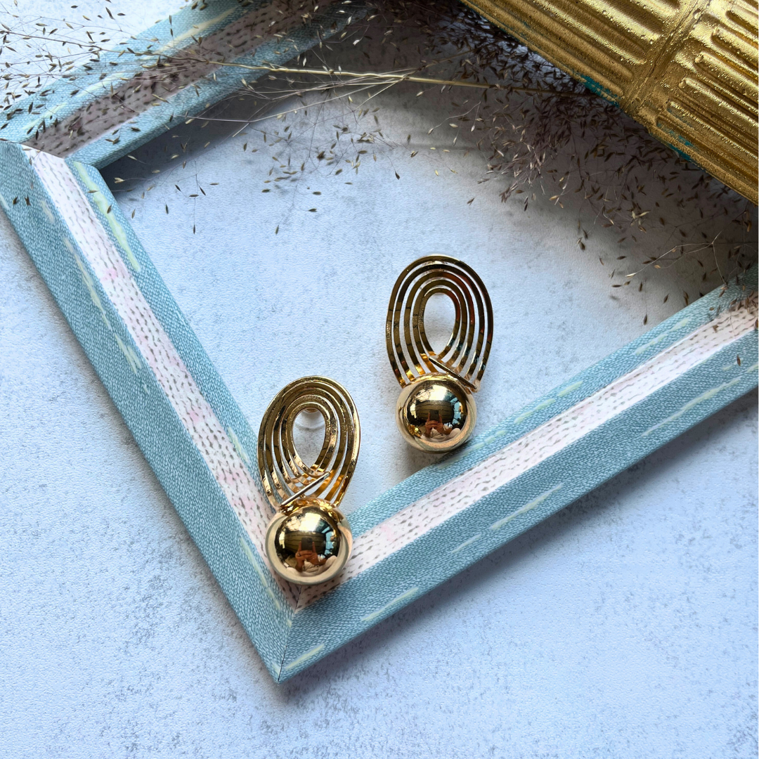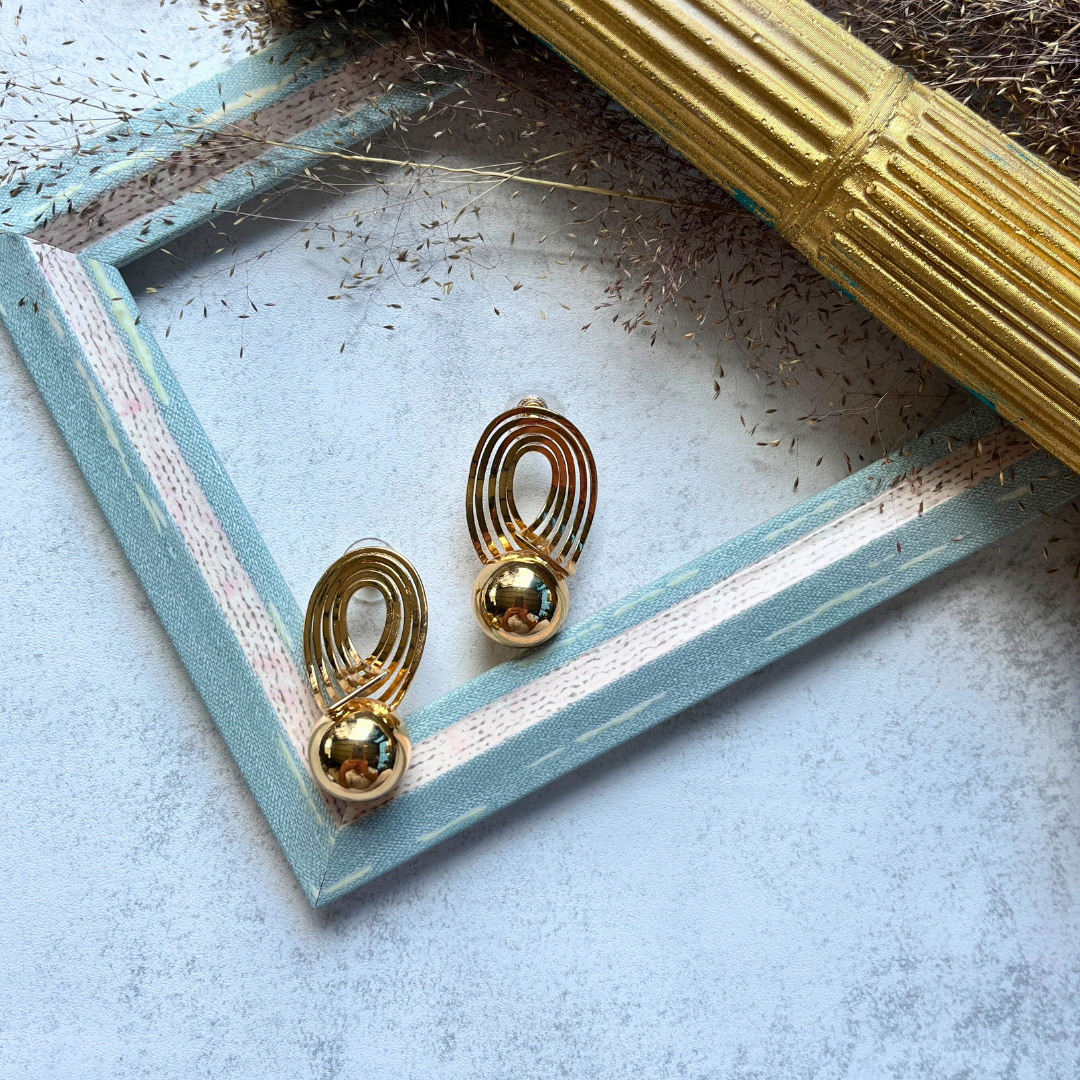 Altın Rengi Geometrik Halkalı Küpe I Mev'Art Collection
