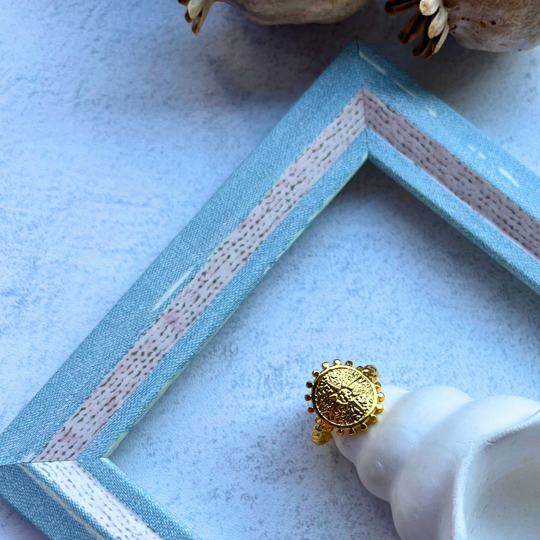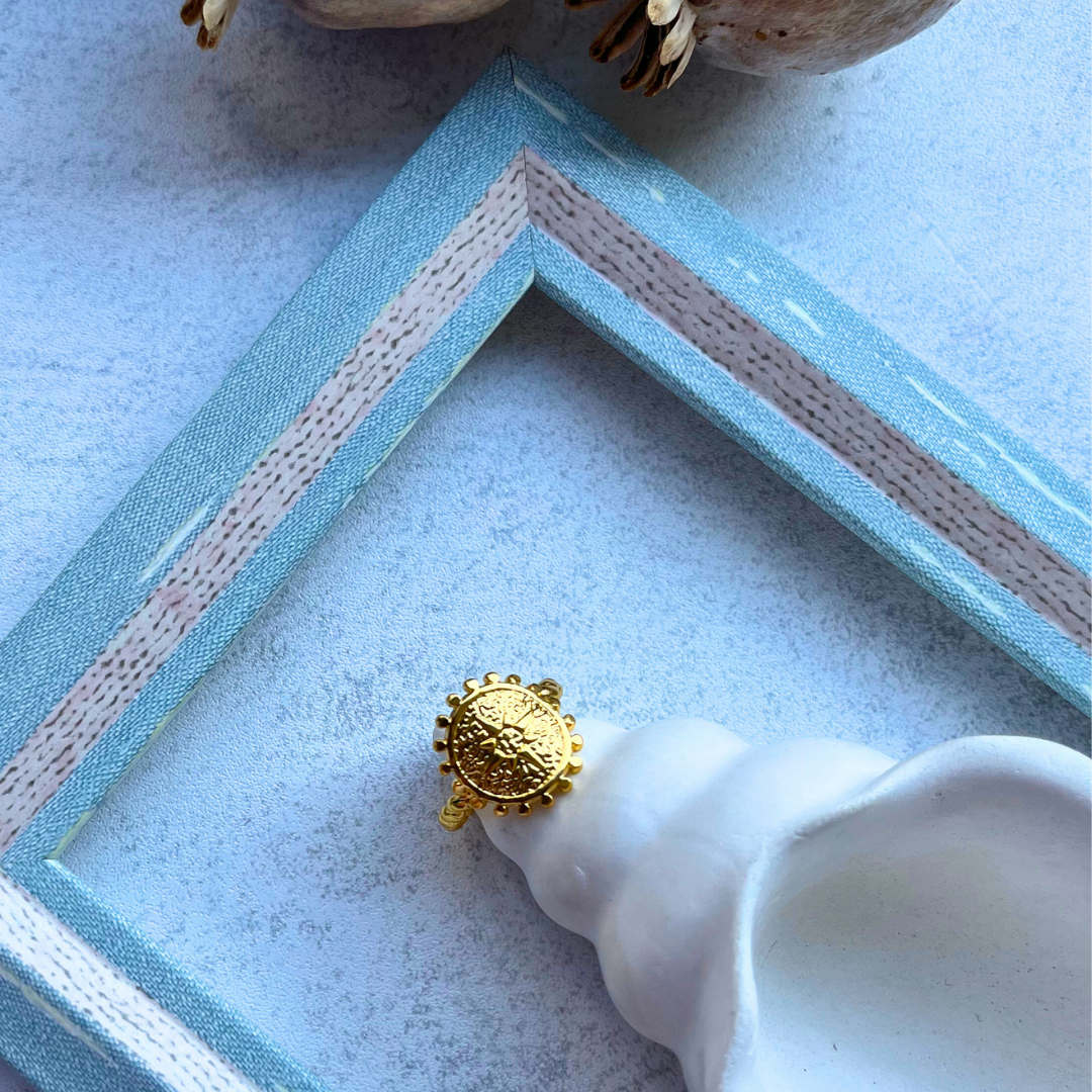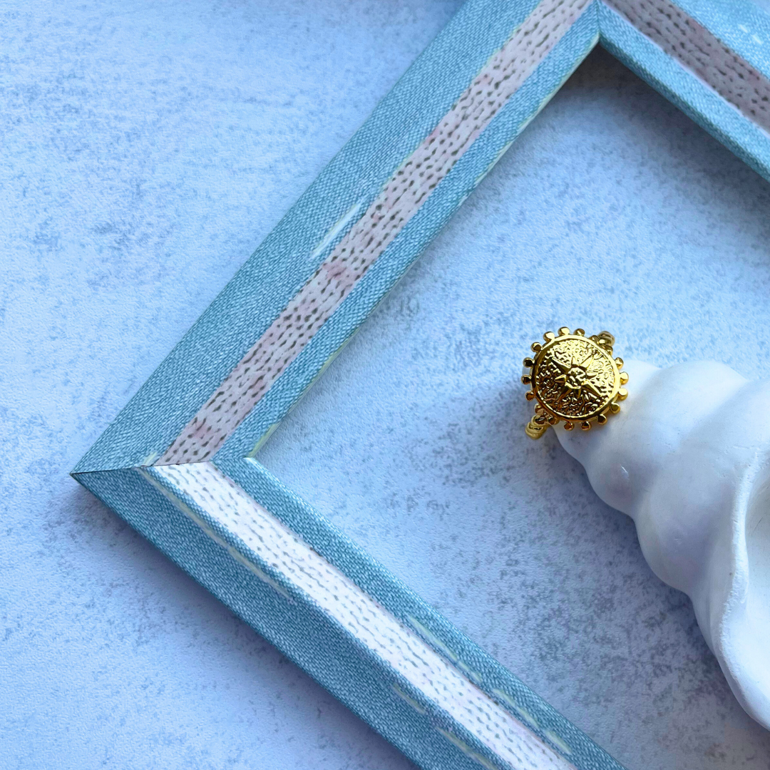 Gold renkli çerçevesiyle geçmişin zarafetini modern stil ile buluşturur.