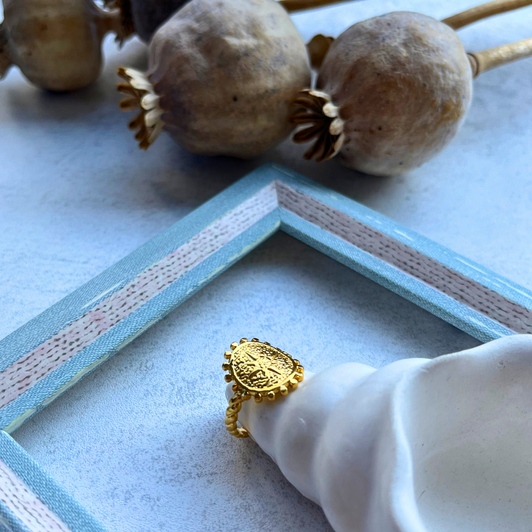 Antik sikke deseninden ilham alan detaylı yüzey tasarımı.