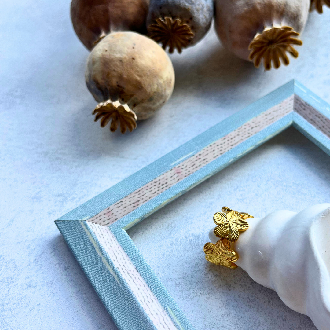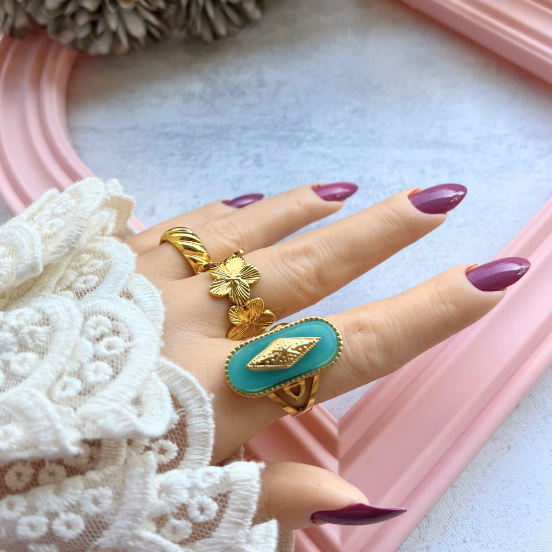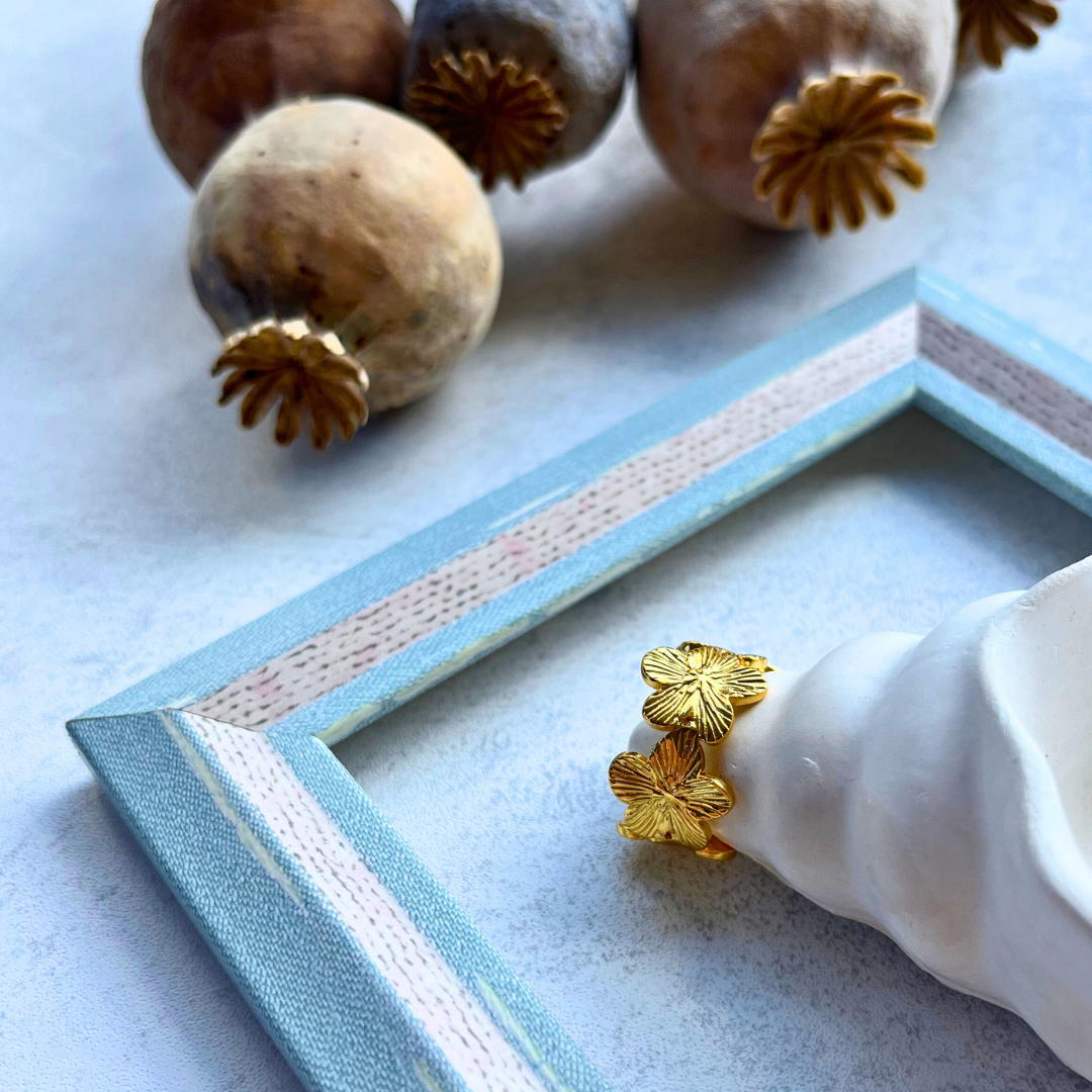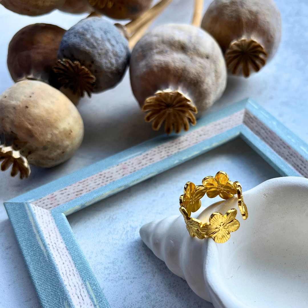 Doğanın zarafetini yansıtan, üç çiçek formuyla tasarlanmış vintage stil bir yüzük.