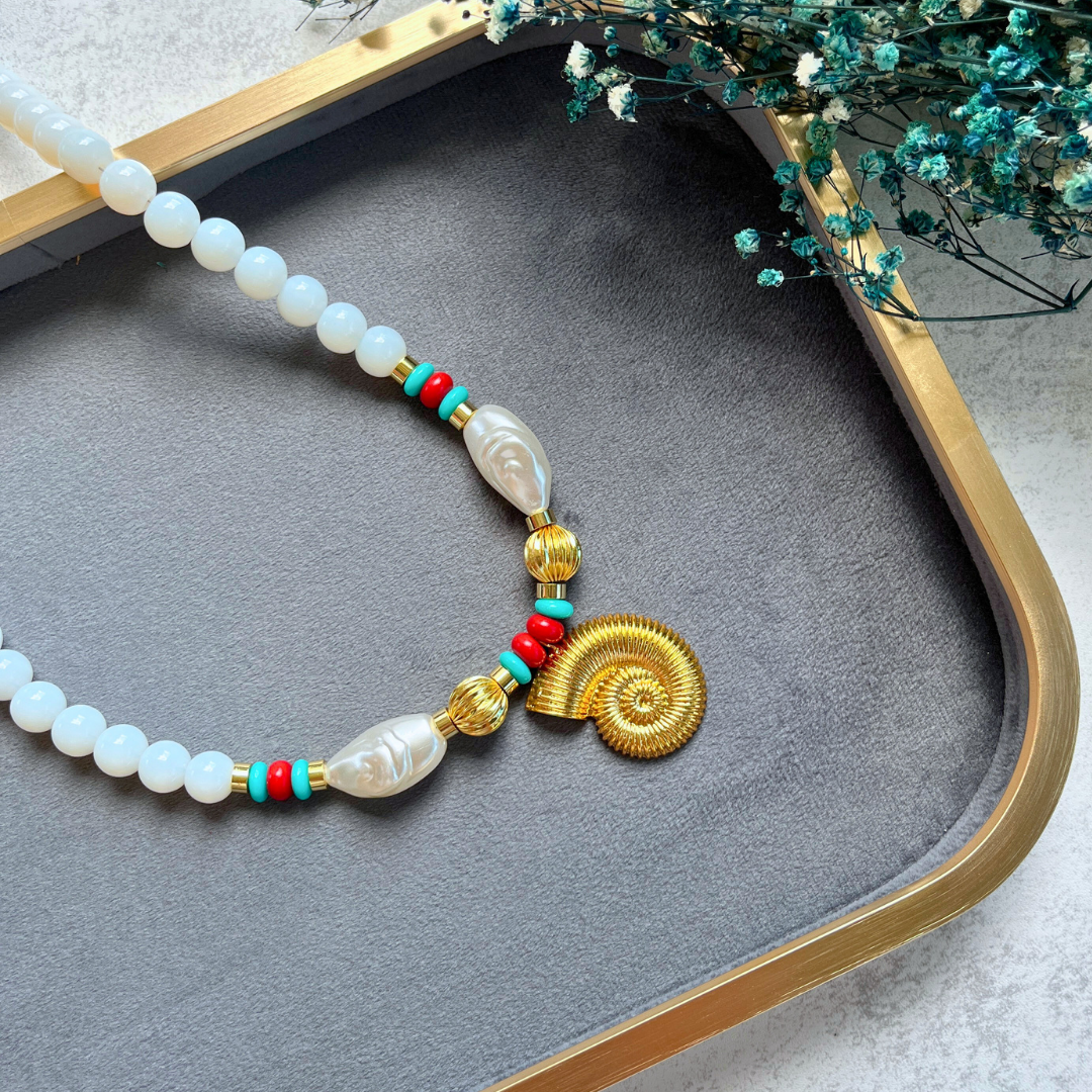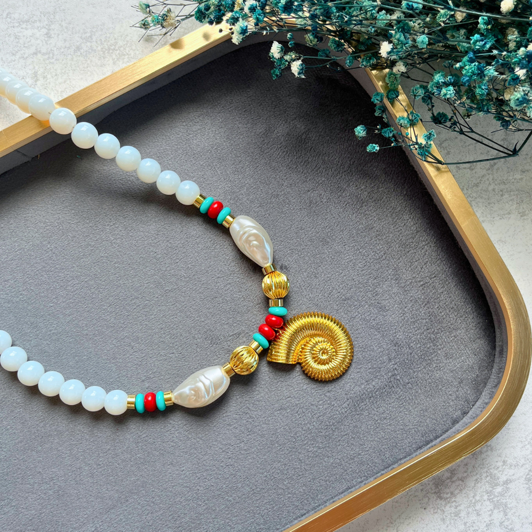 Beyaz & İnci Detaylı Spiral Kolye I Mev'Armoni Collection