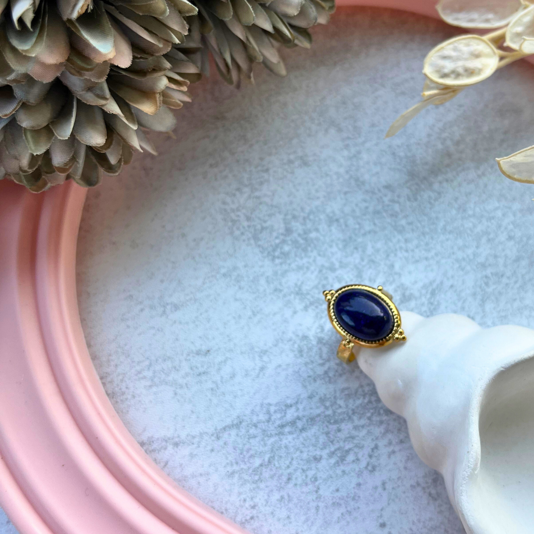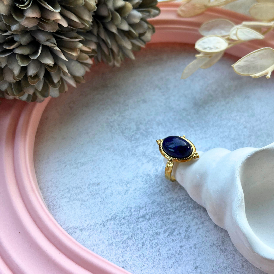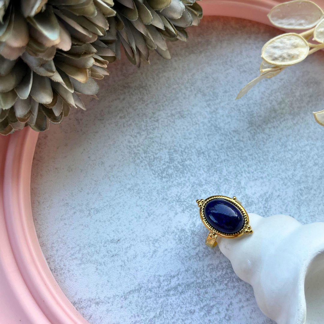 Oval kesim lacivert doğal taş merkezli
