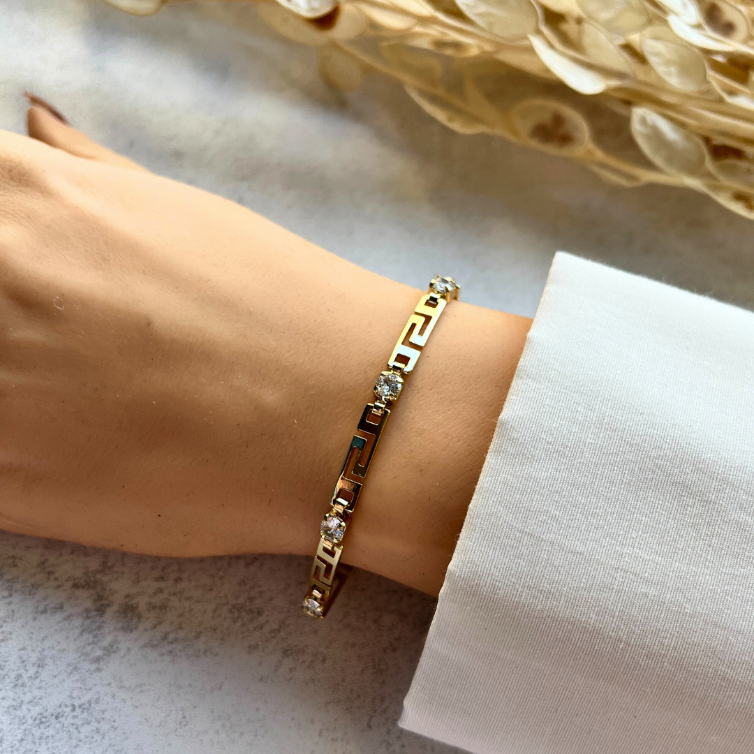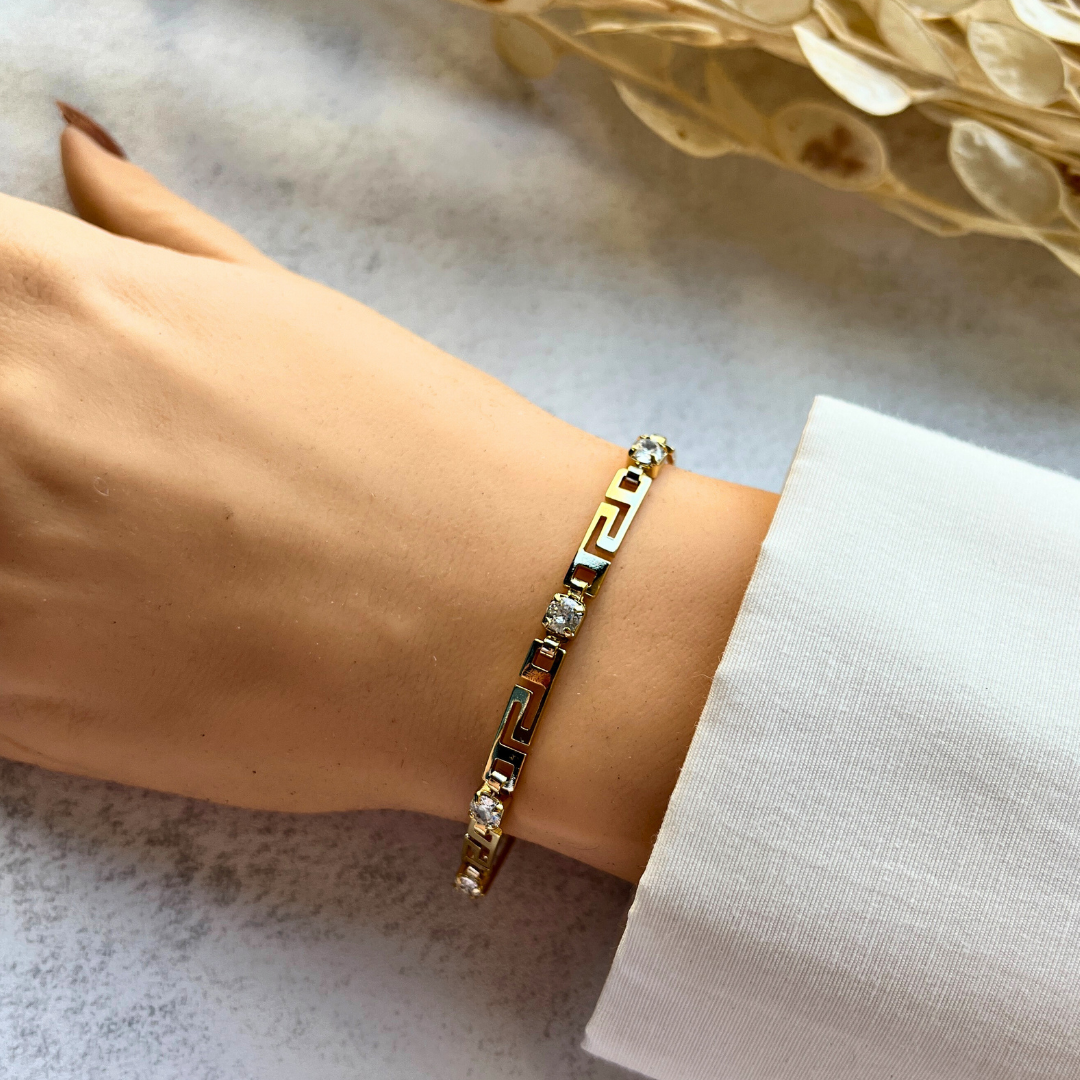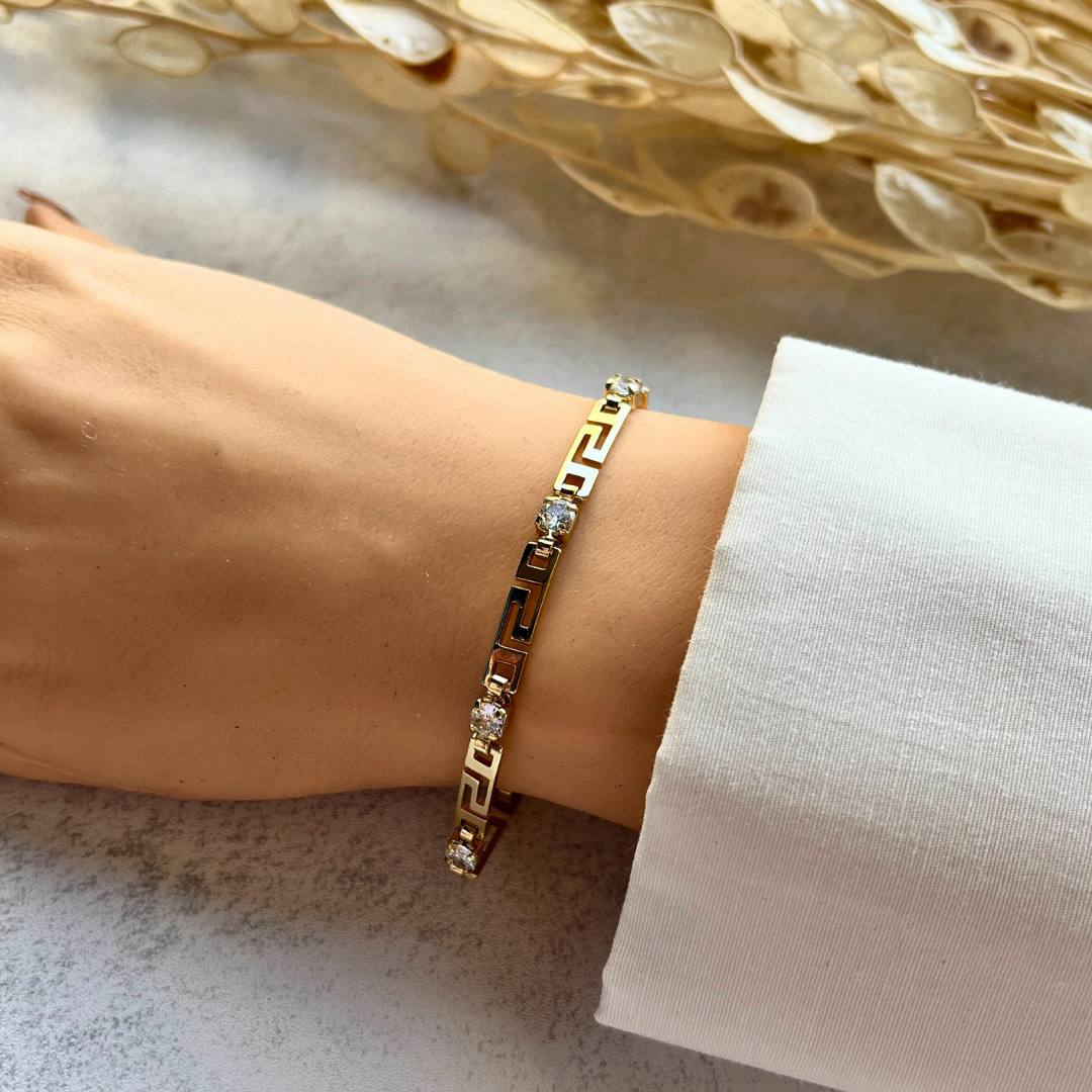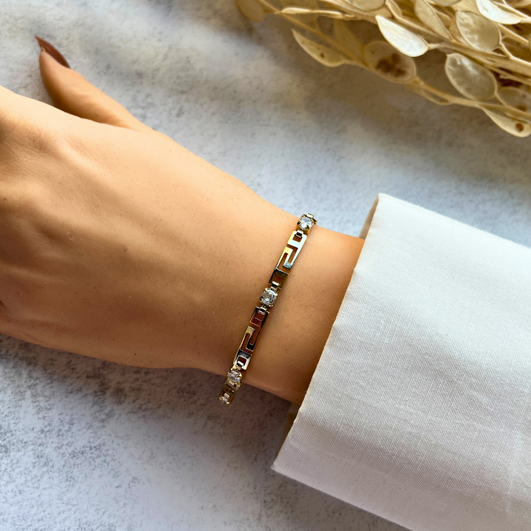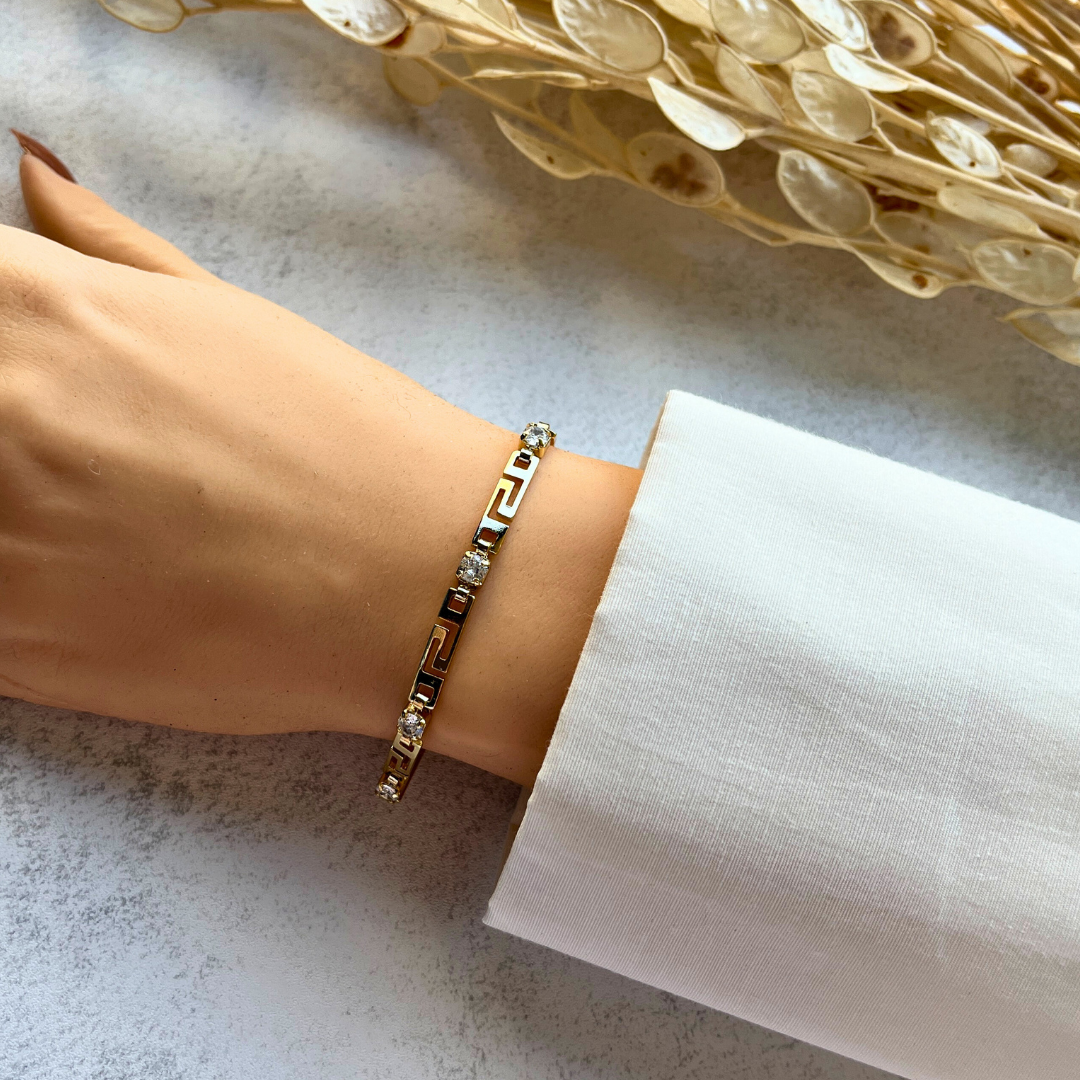 Geometrik Desenli Taşlı Bileklik 19 cm I Mev'Altın Collection
