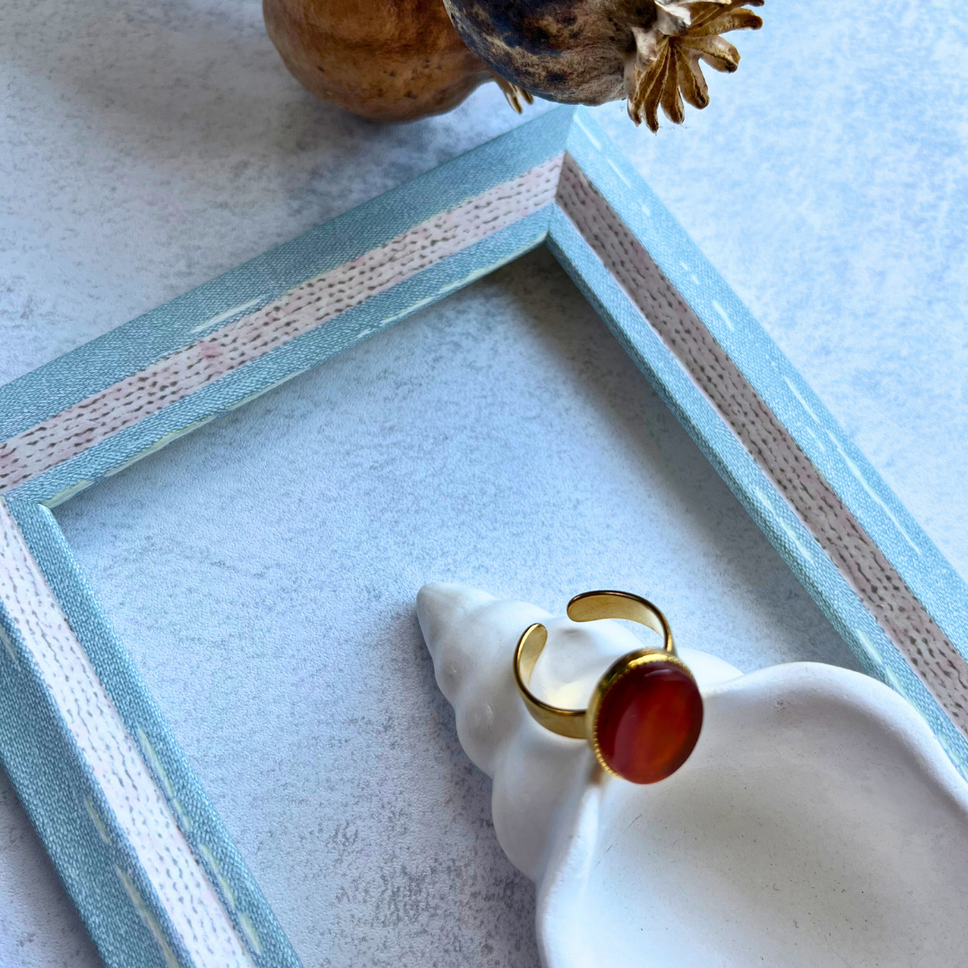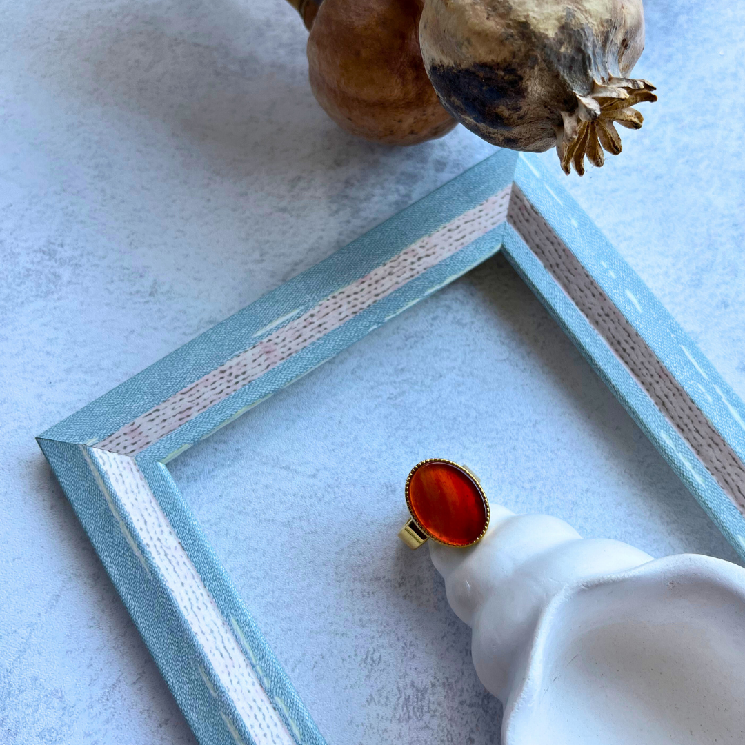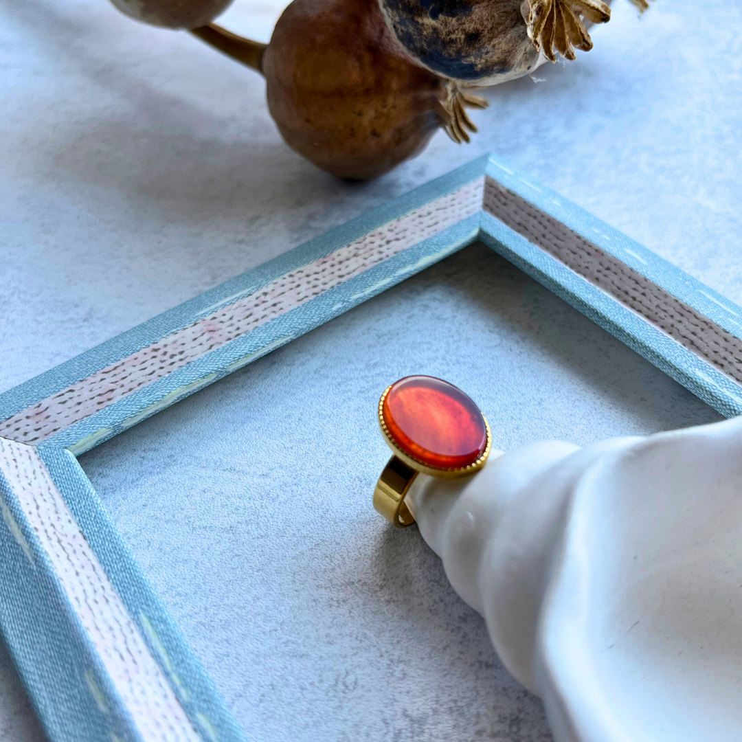 Oval formda turuncu-kırmızı geçişli taş detayı.