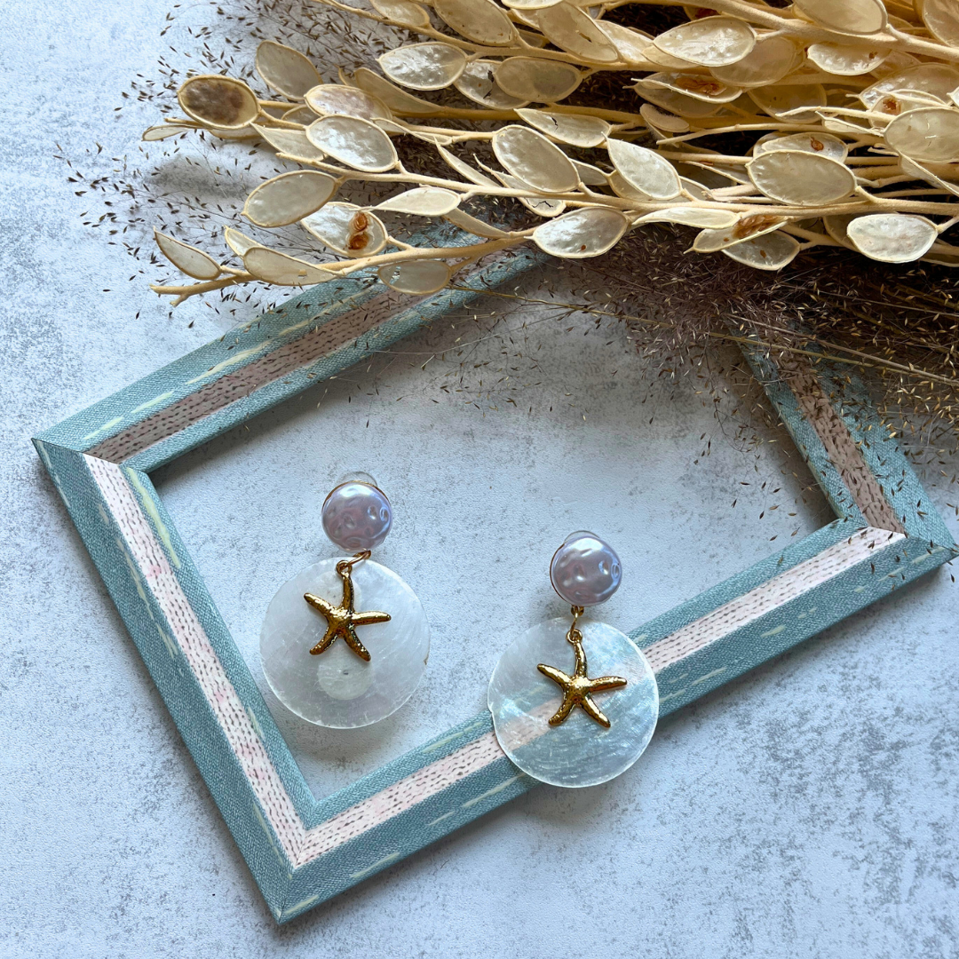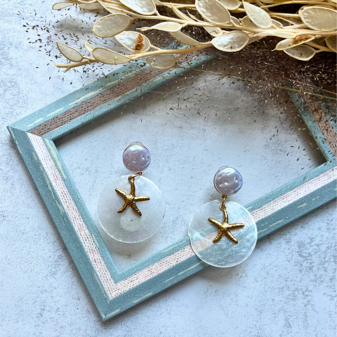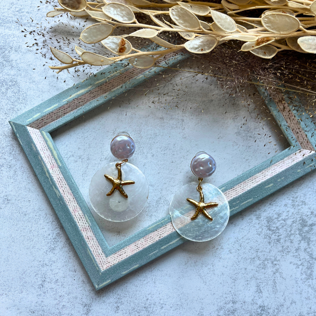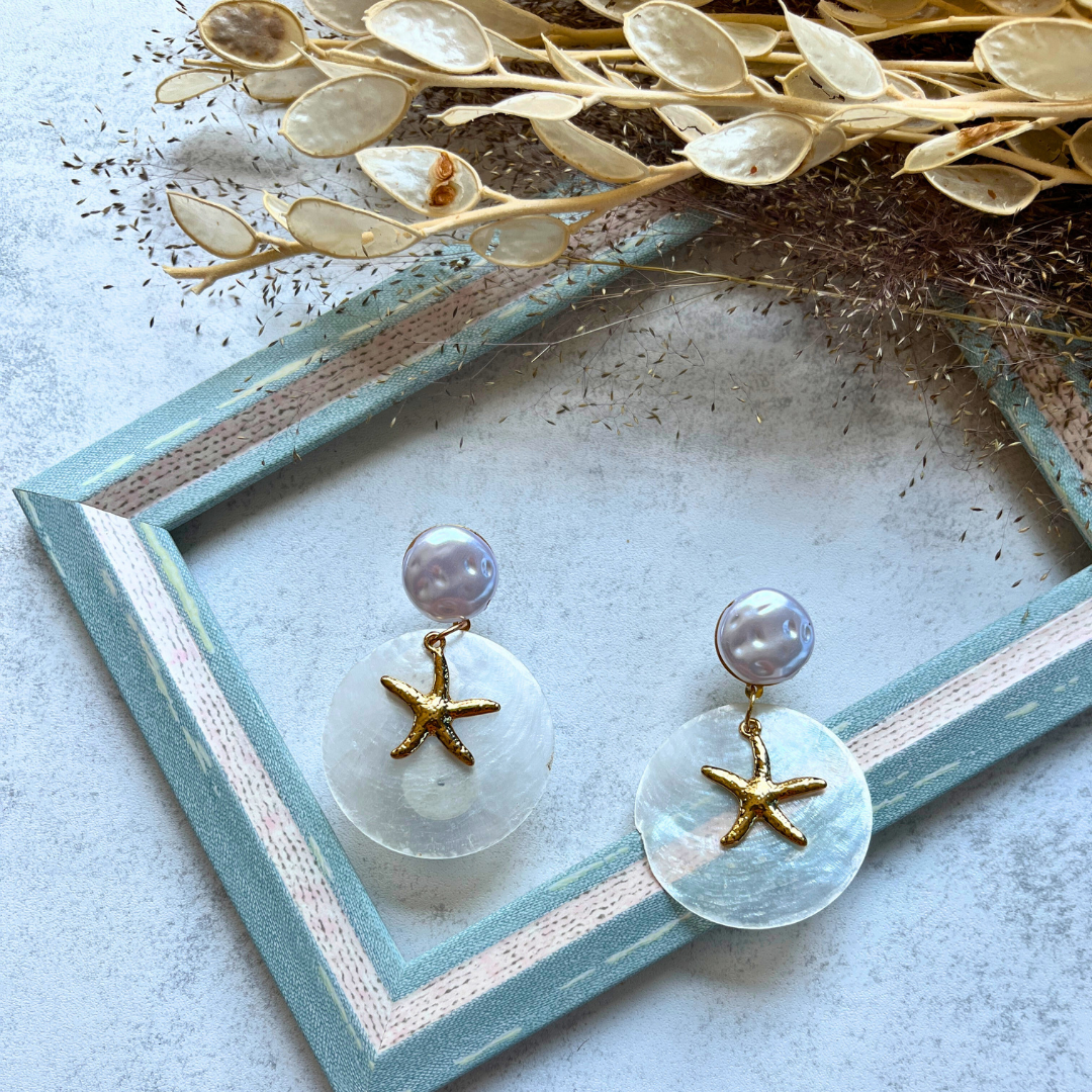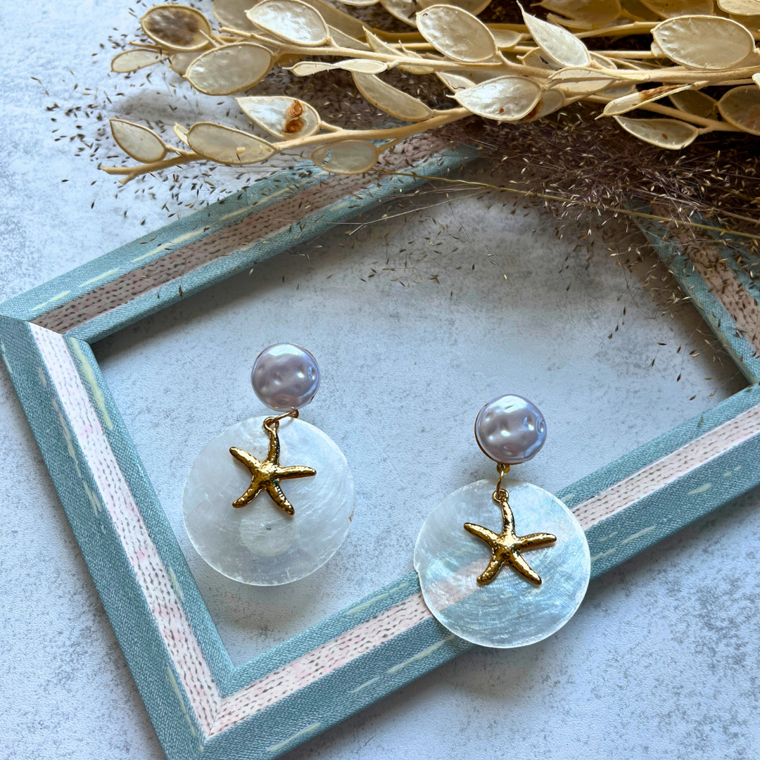İncili Deniz Yıldızı Küpe I Mev'Art Collection