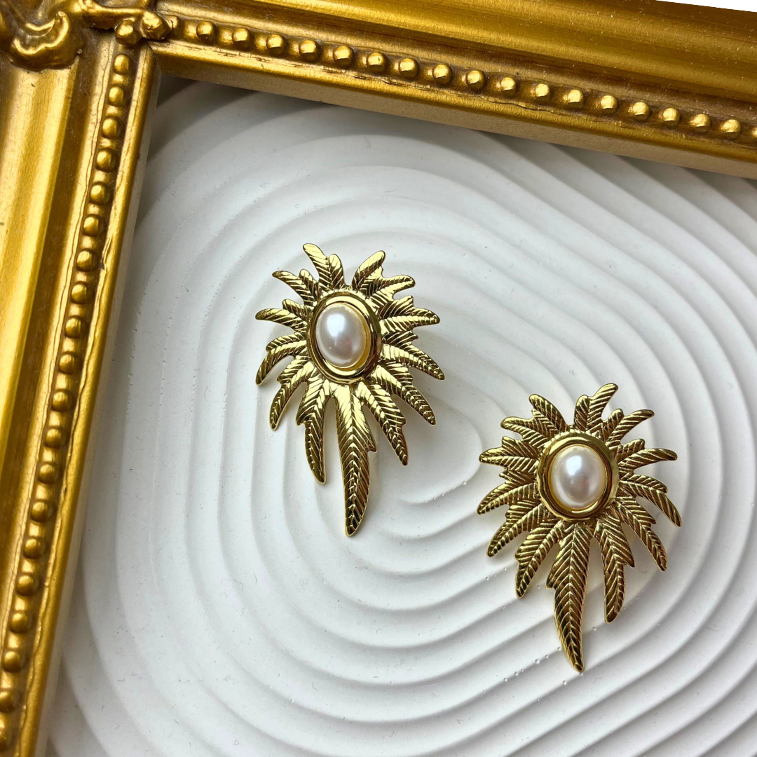 Mev'Ahenk Collection’ın en özgün parçalarından biri olan İncili Palmiye Küpe, tropikal esintileri zarif incilerle buluşturuyor. Palmiye yaprağını andıran detaylı formu, inci ile birleşerek sofistike bir şıklık sunar. Çelik malzemeden üretilmiş bu özel tasarım küpe, dayanıklılığı ve zarif görünümüyle hem günlük kombinlerinize hem de özel günlerinize eşsiz bir dokunuş katar.