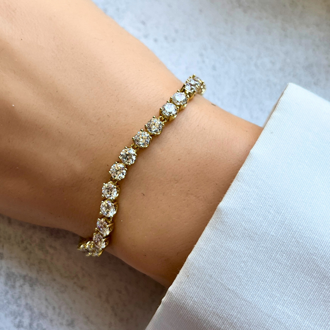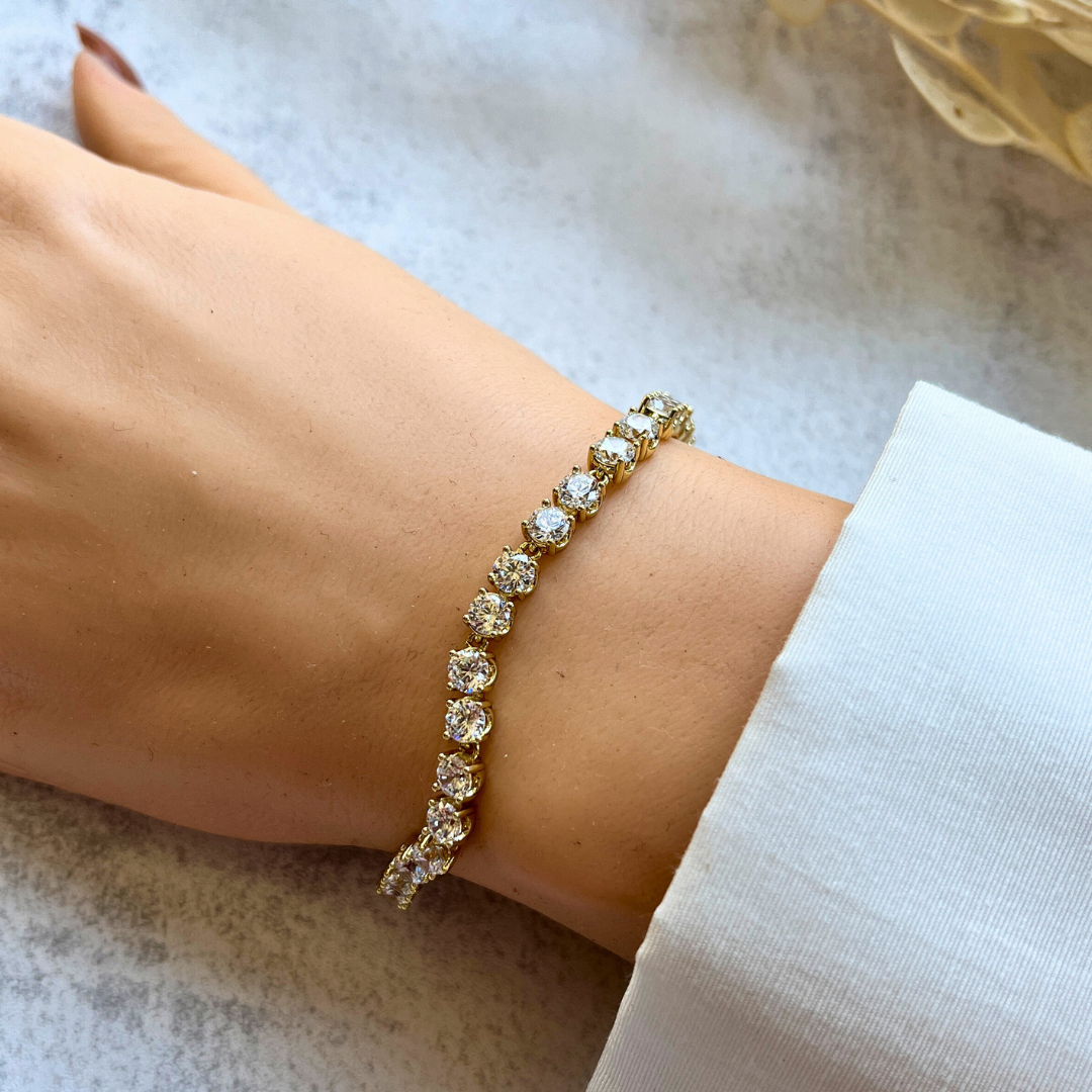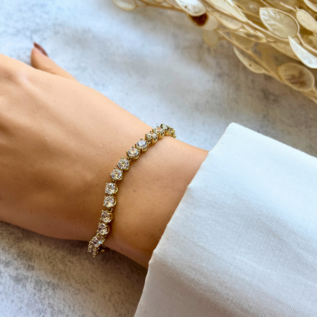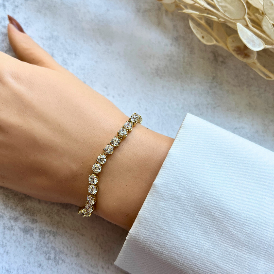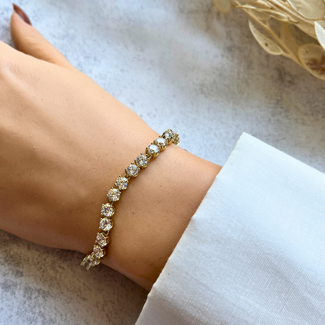 Klasik Yuvarlak Taşlı Bileklik 19,5-17 cm I Mev'Altın Collection
