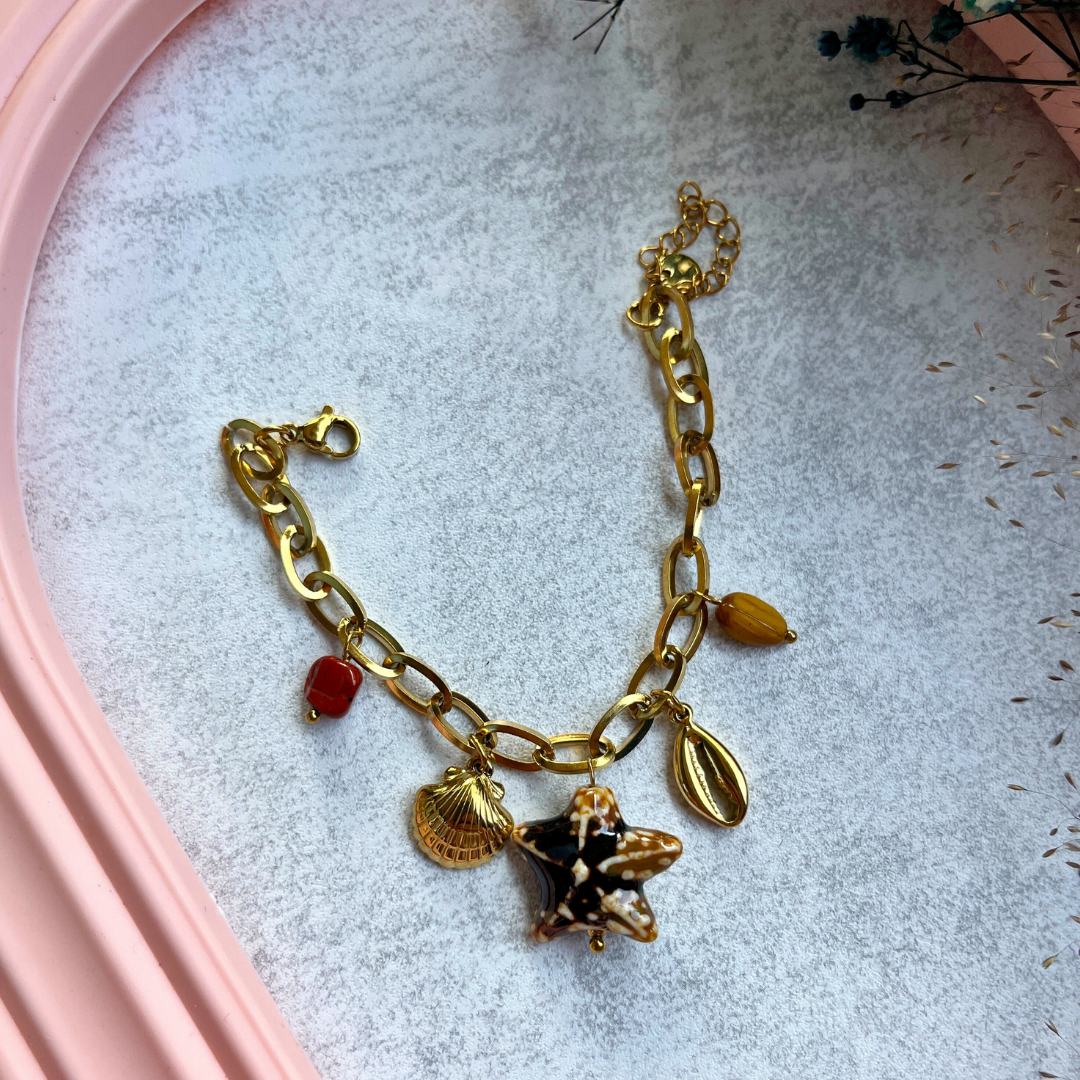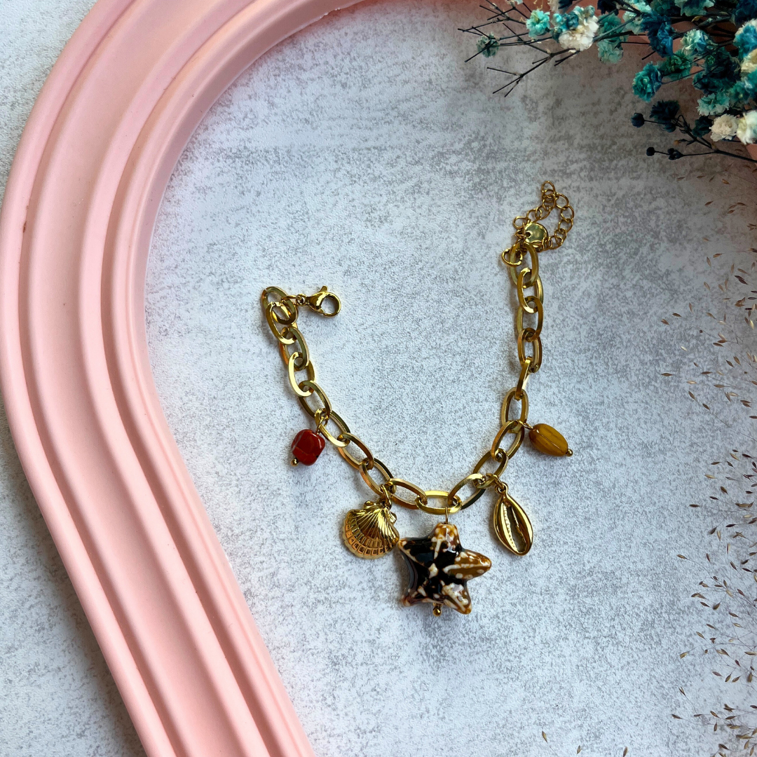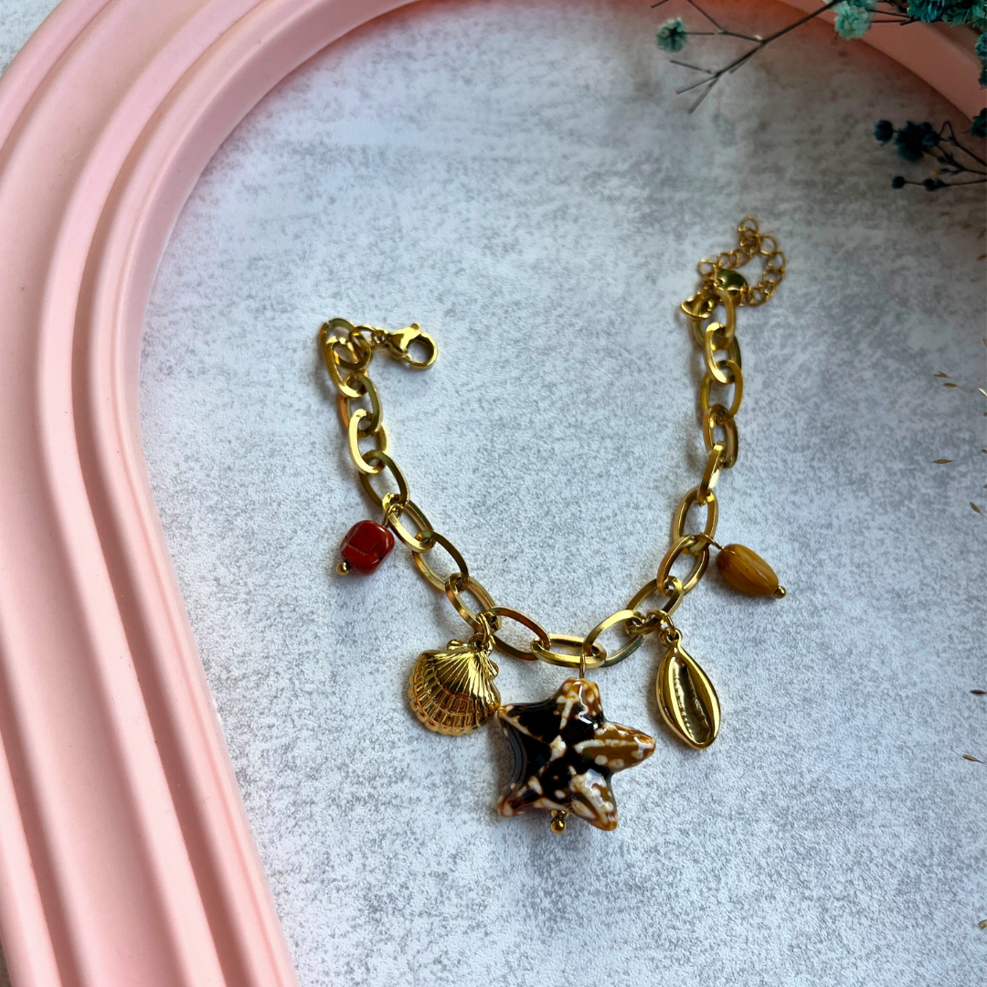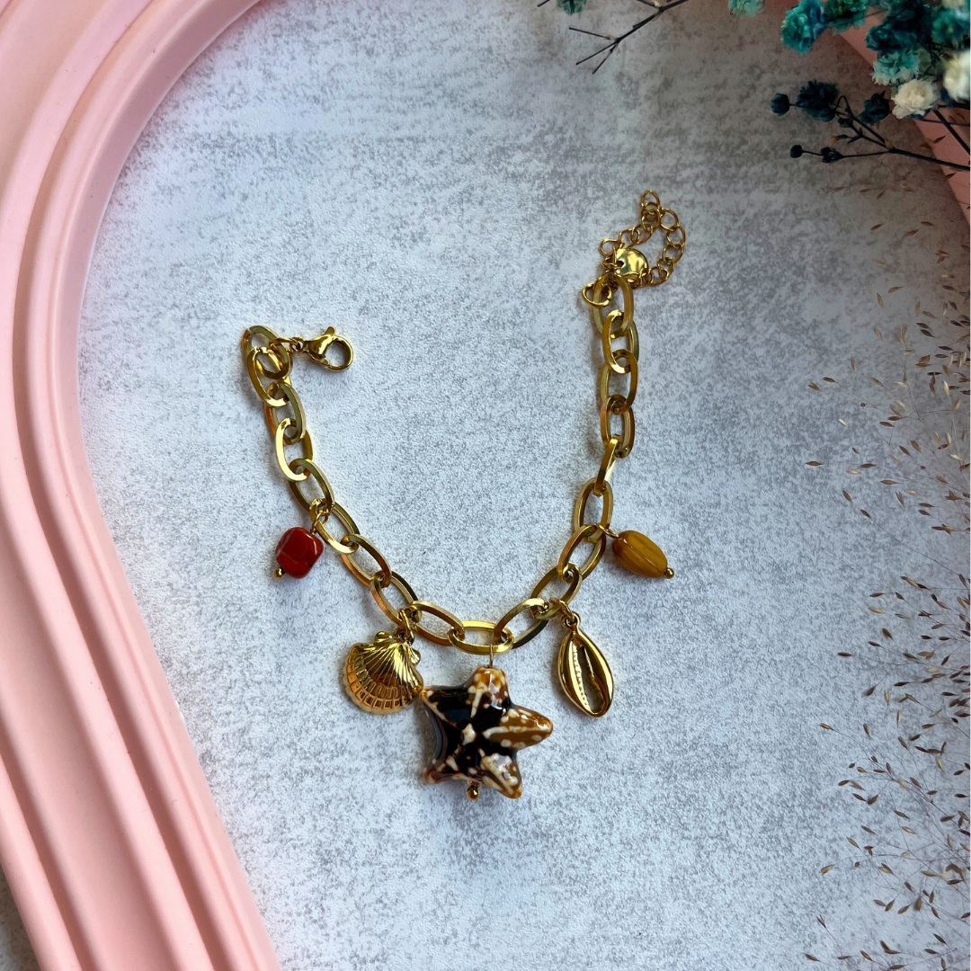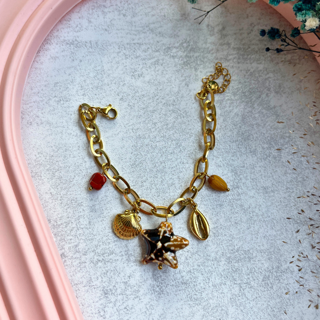 🌟 Kum yıldızı formunda büyük figürüyle bilekte dikkat çeker.