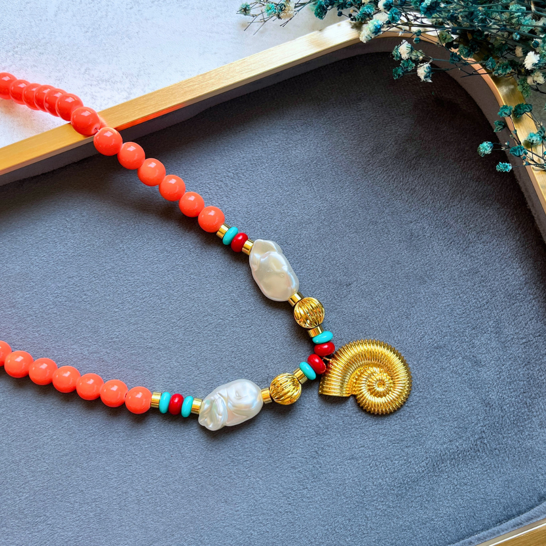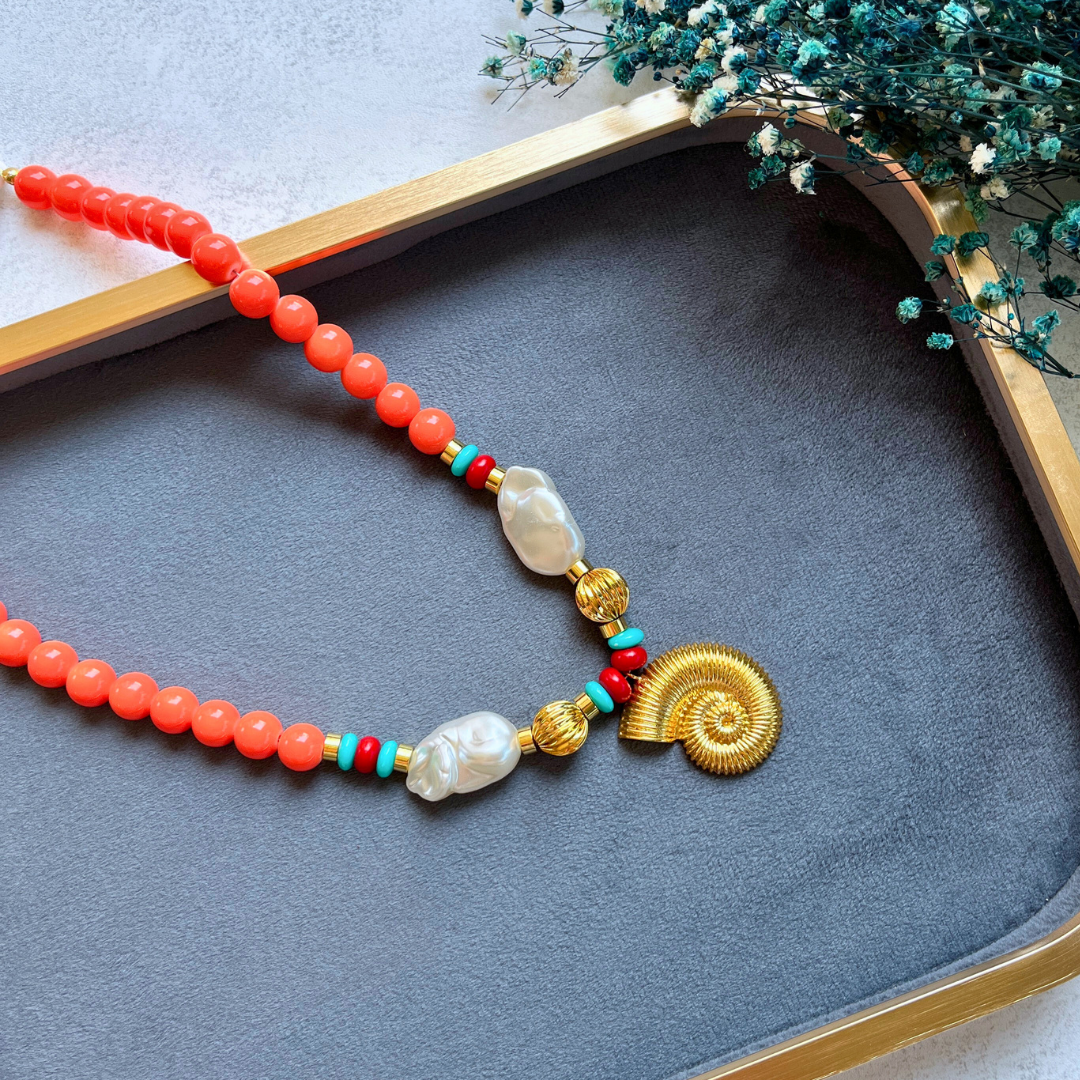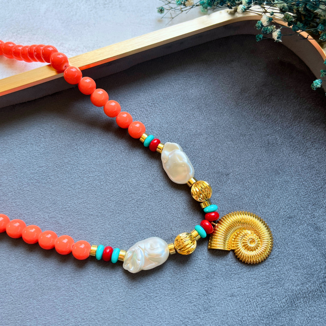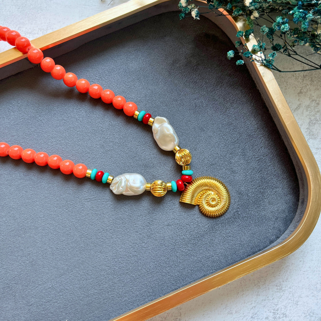 Mercan & İnci Detaylı Spiral Kolye I Mev'Armoni Collection