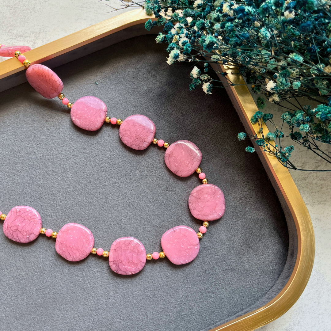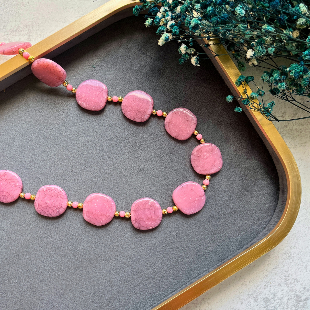 Pembe Doğal Taş Kolye I Mev'Armoni Collection