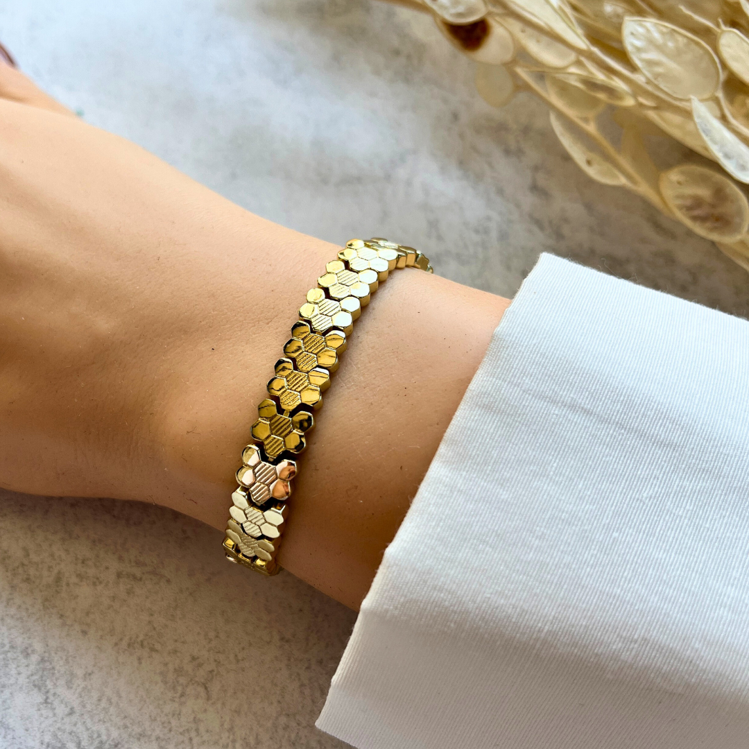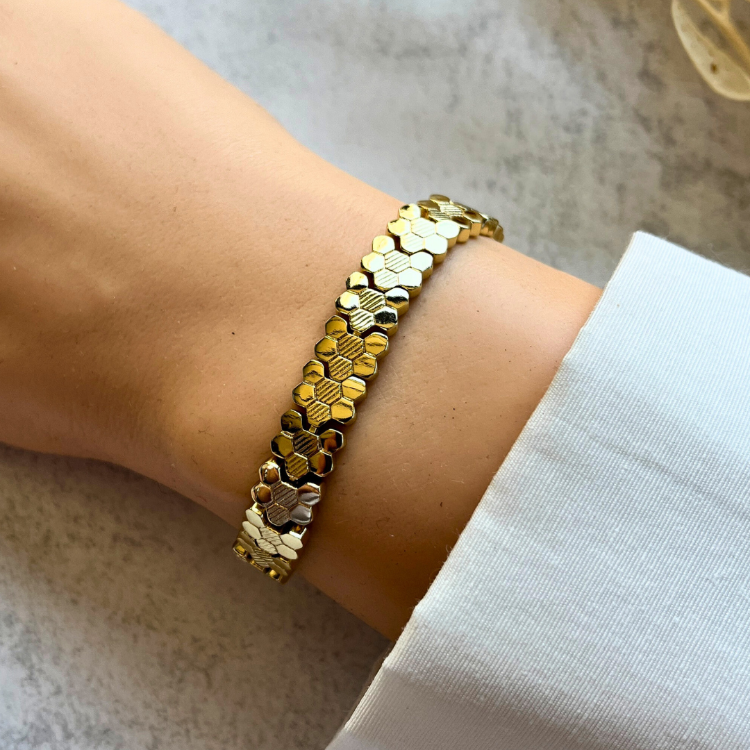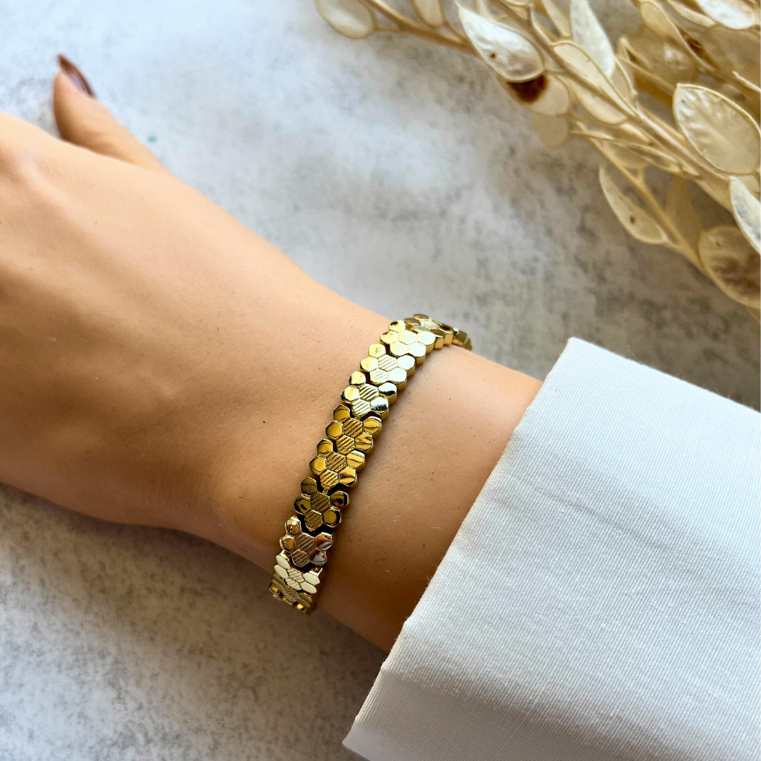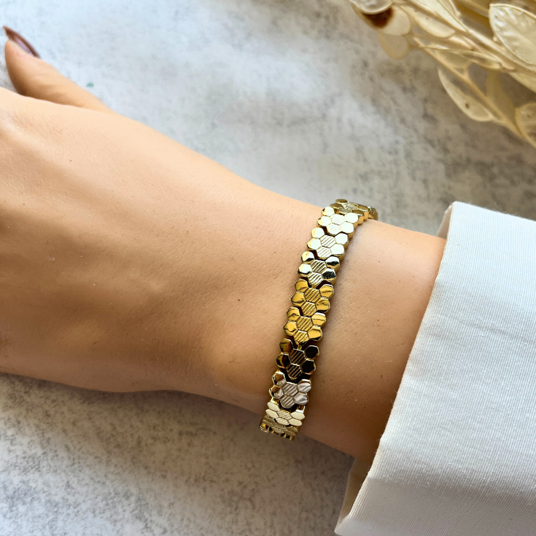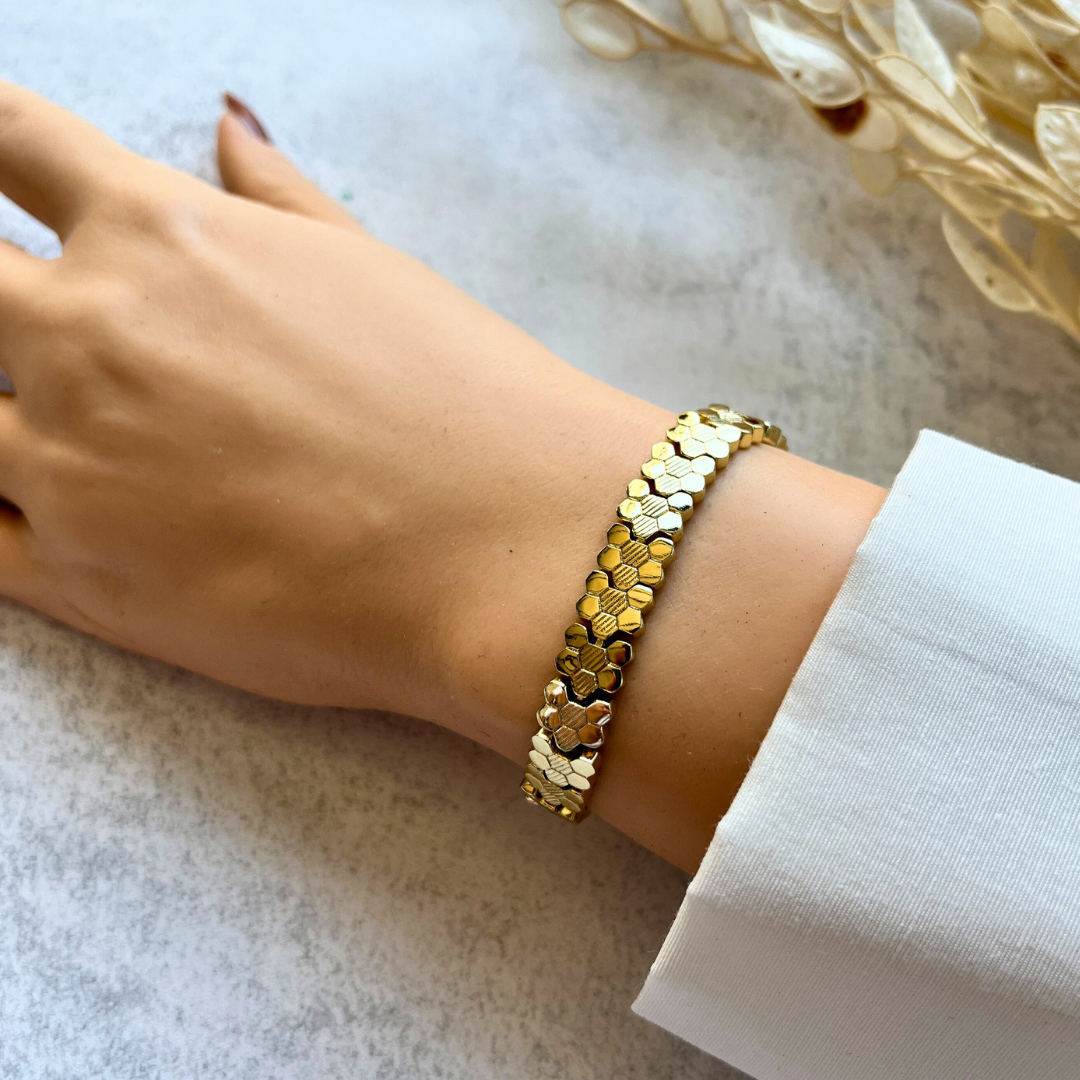 Petek Form Altın Rengi Bileklik 19-17 cm I Mev'Altın Collection