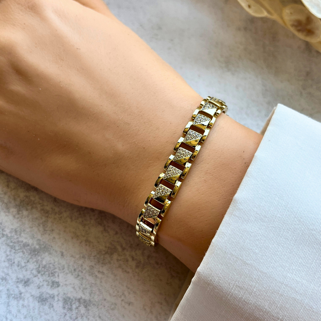 Piramit Taşlı Bileklik 19,5-17,5 cm | Mev'Altın Collection
