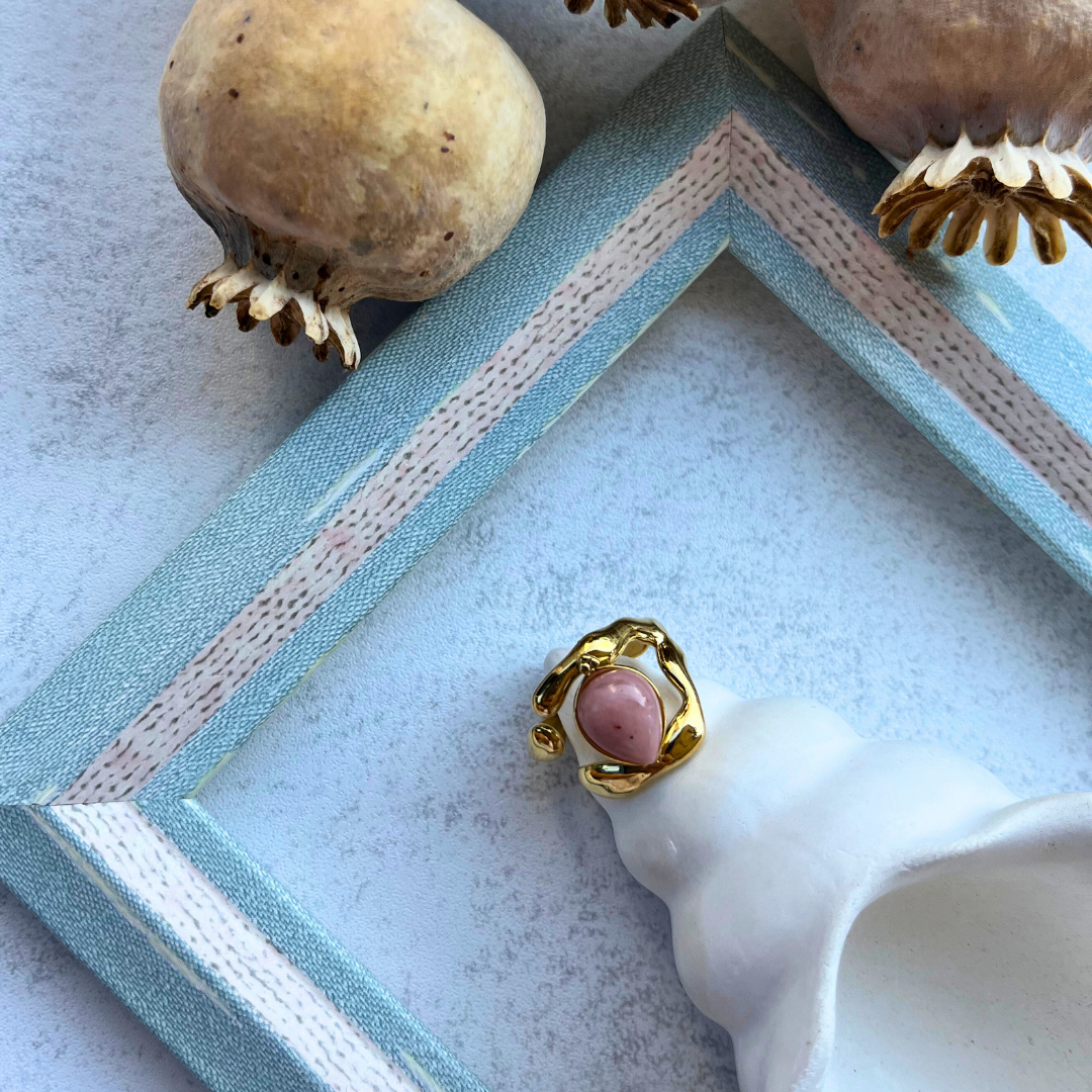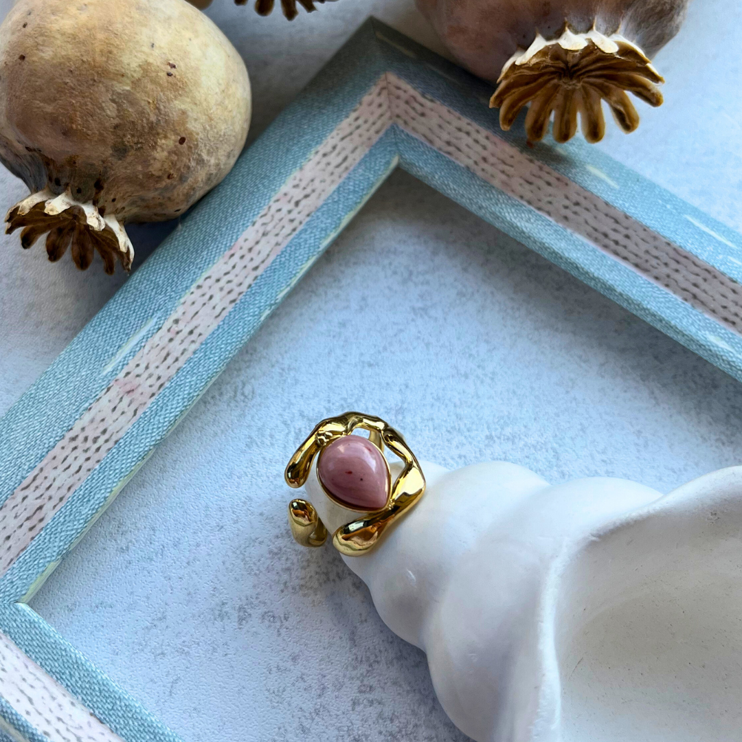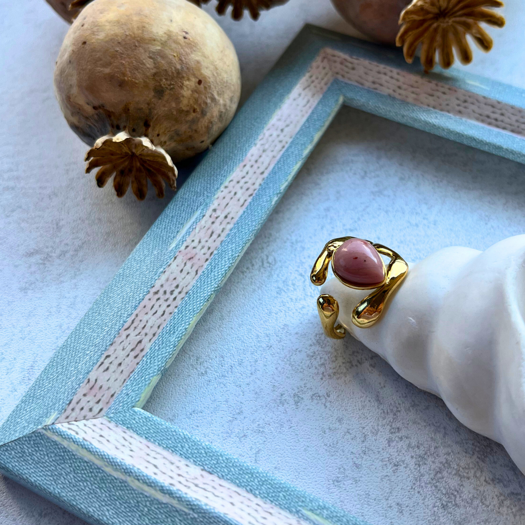 Pudra Damla Taşlı Sıvama Yüzük I Me'VintAge Collection
