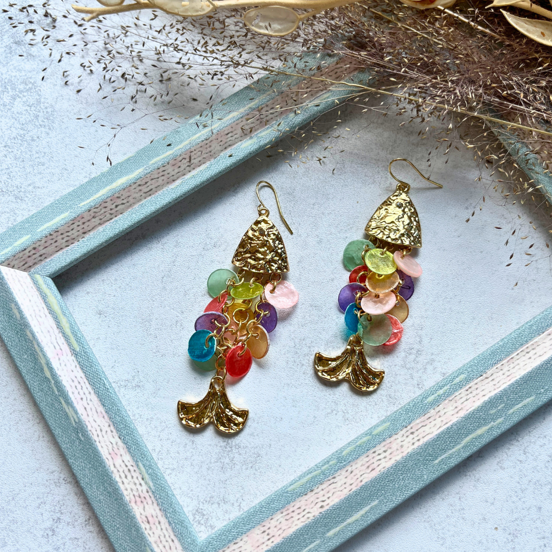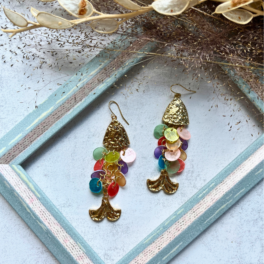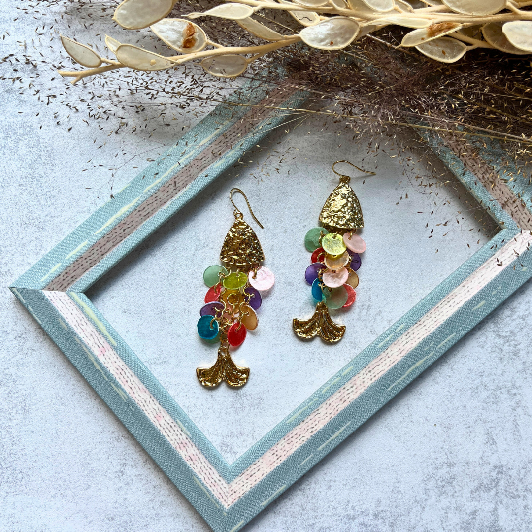 Renkli Pul Detaylı Balık Küpe I Mev'Art Collection