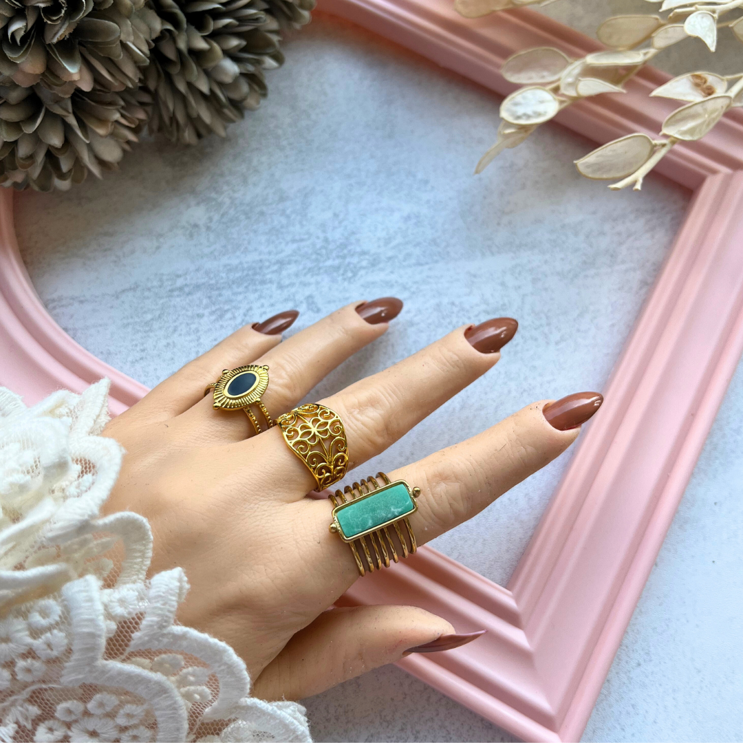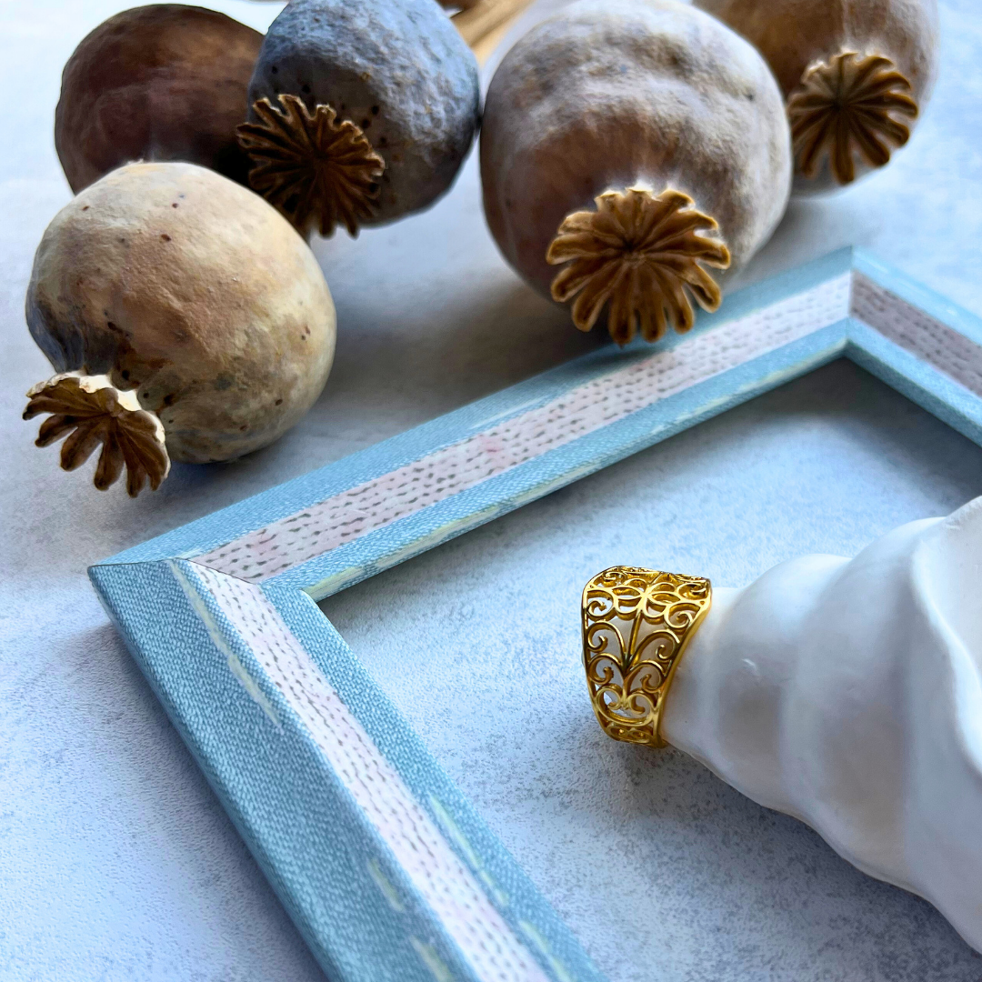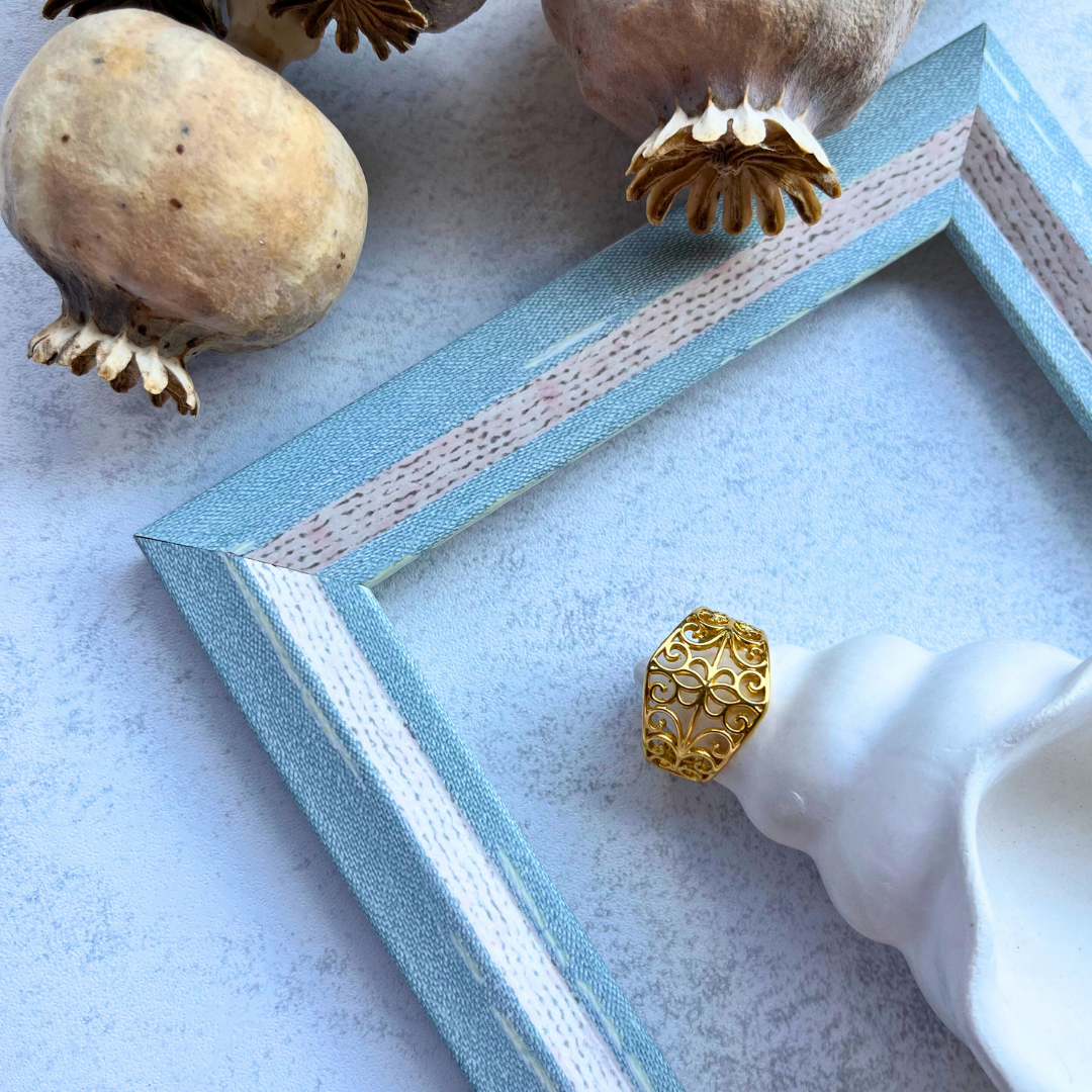 İnce kıvrımlar ve zarif motiflerle bezenmiş altıgen formlu vintage tasarım.