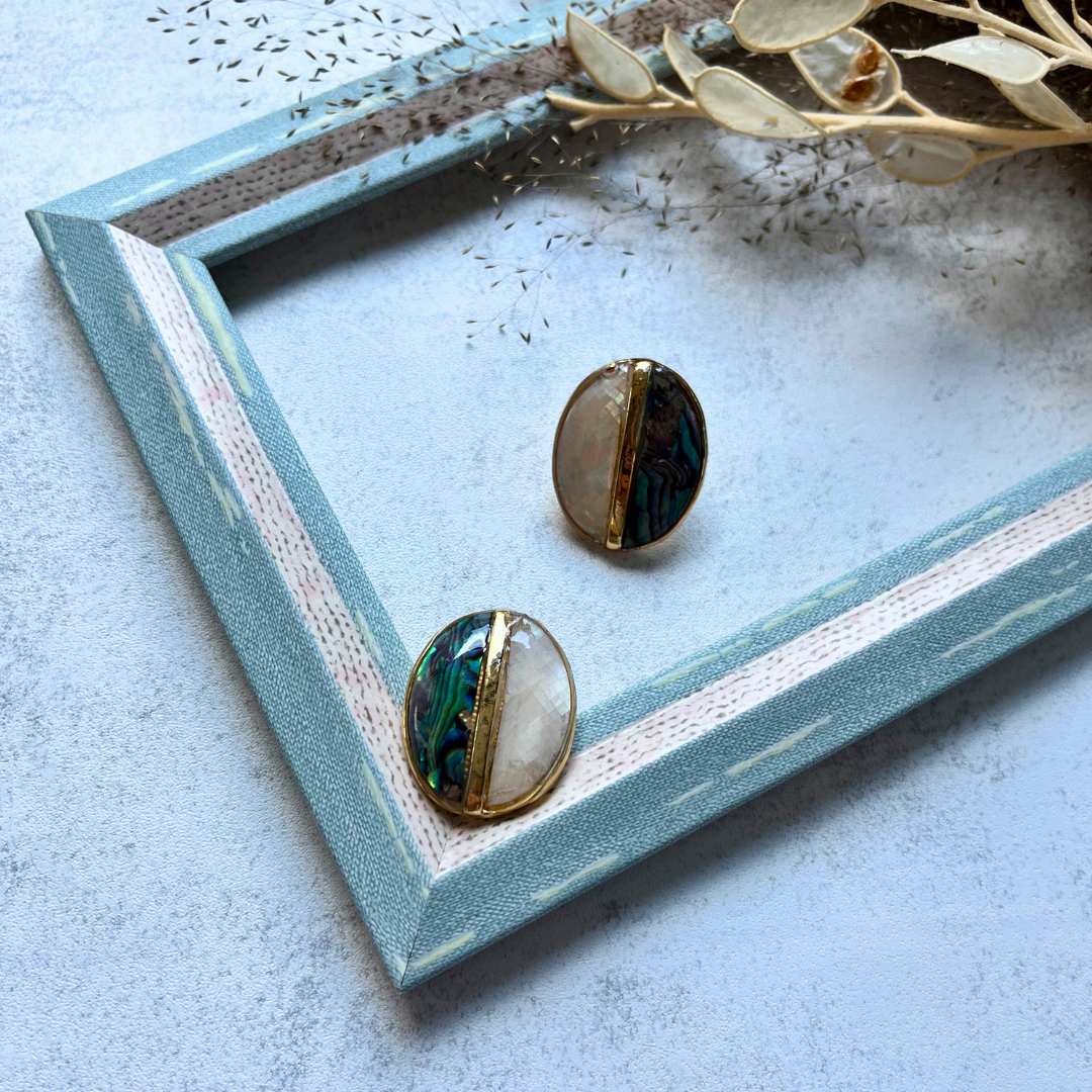 Sedef ve Abalone Detaylı Yuvarlak Küpe I Mev'Art Collection
