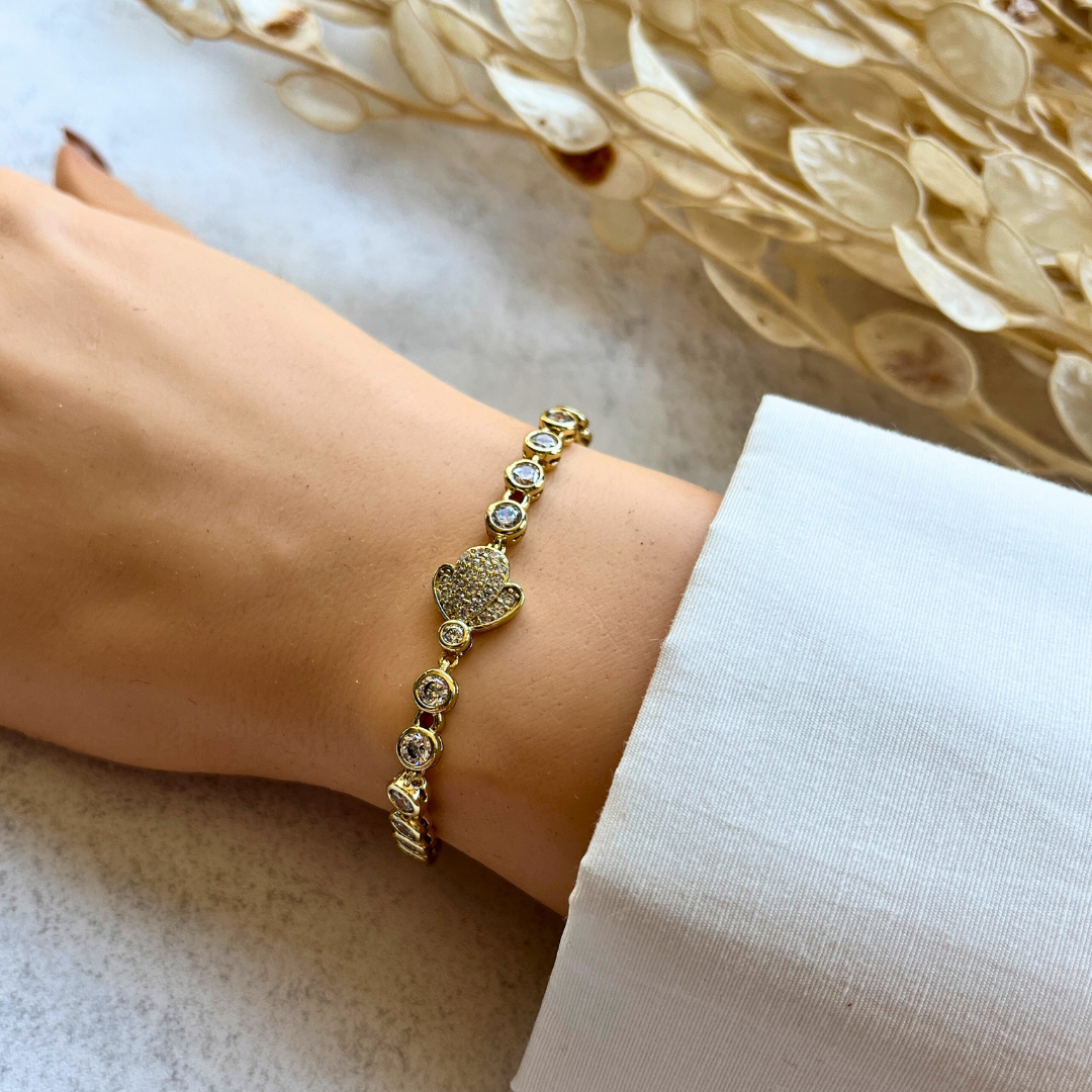 Taşlı Nilüfer Bileklik 19,5-17 cm | Mev'Altın Collection