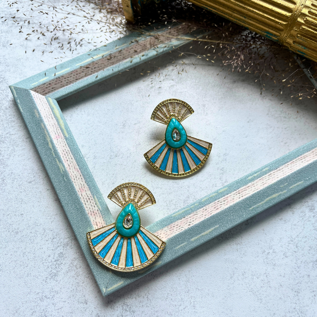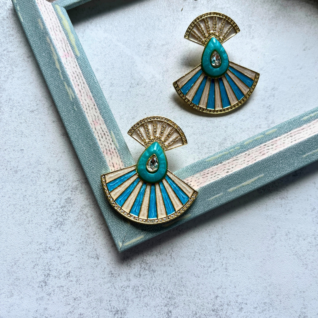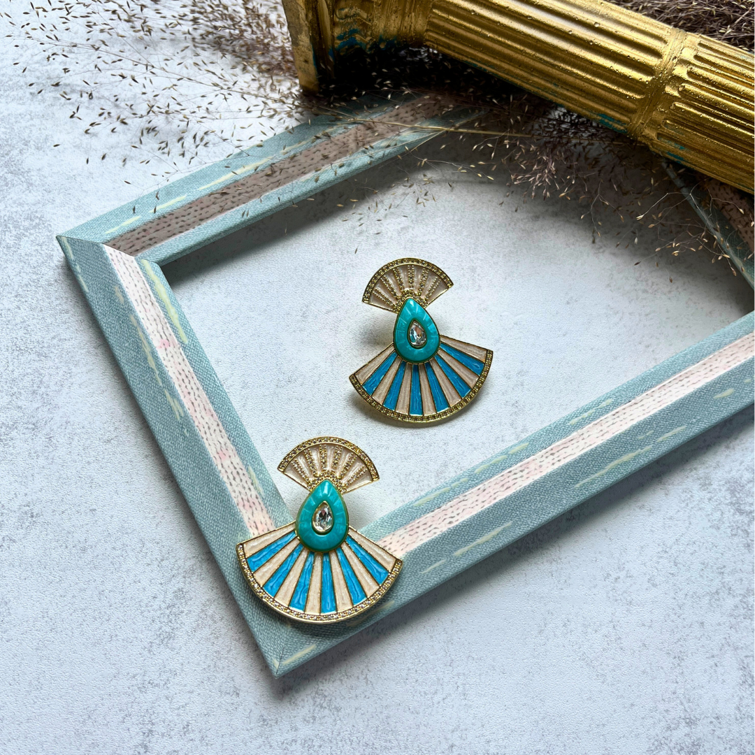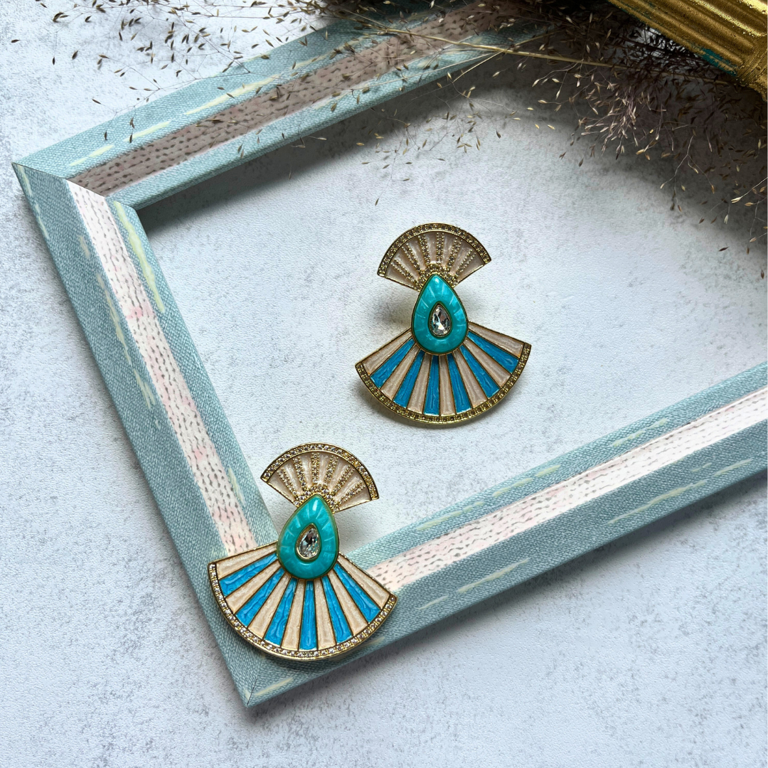 Turkuaz Yelpaze Küpe I Mev'Art Collection