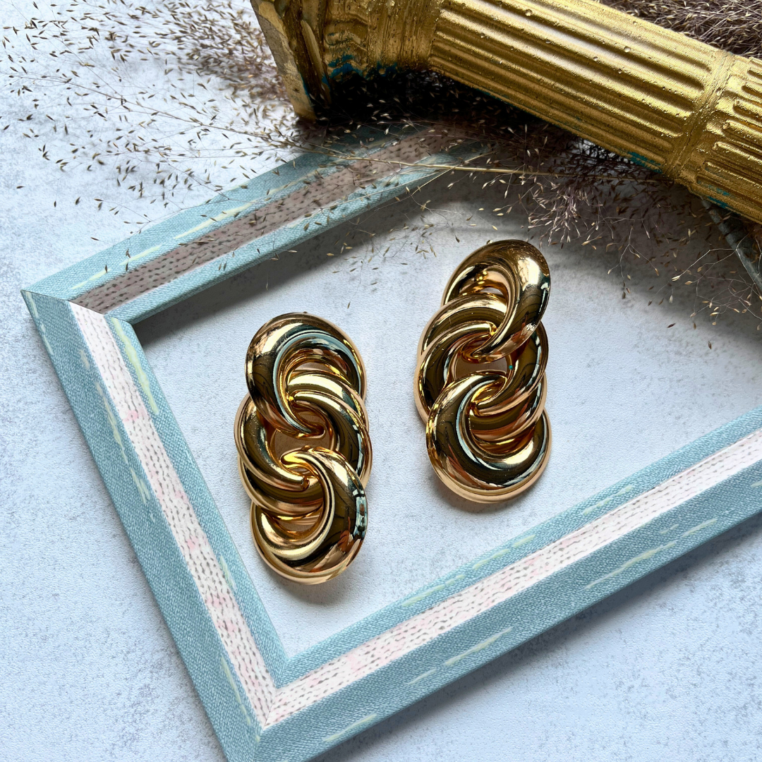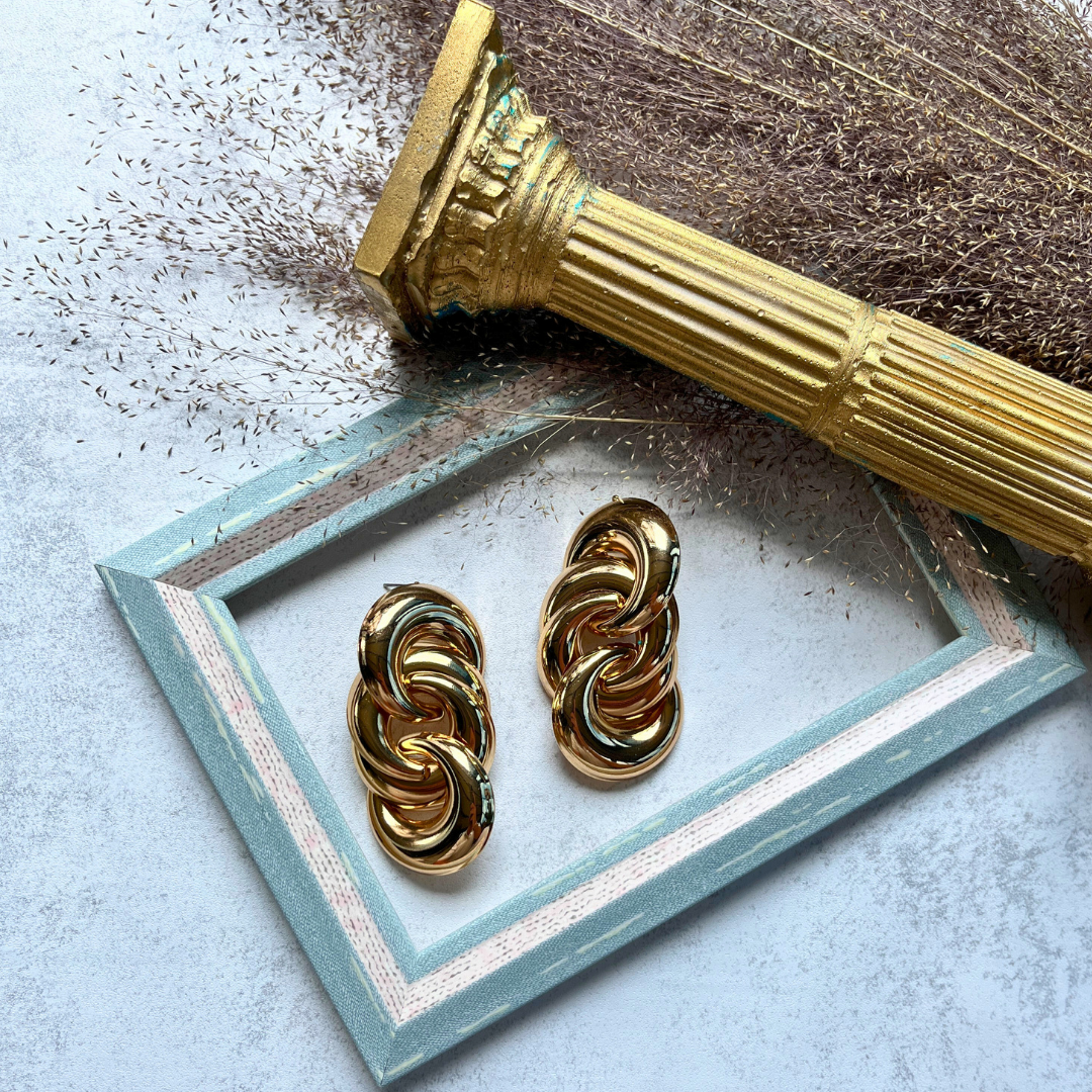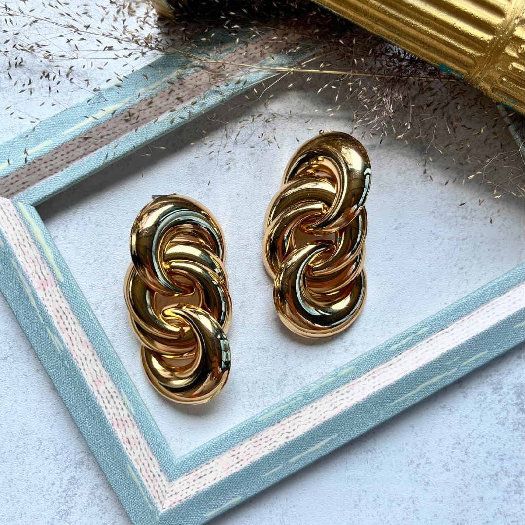 Zincir Formlu Altın Rengi Küpe I Mev'Art Collection
