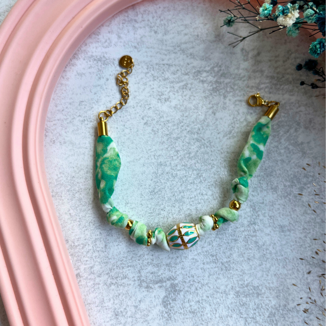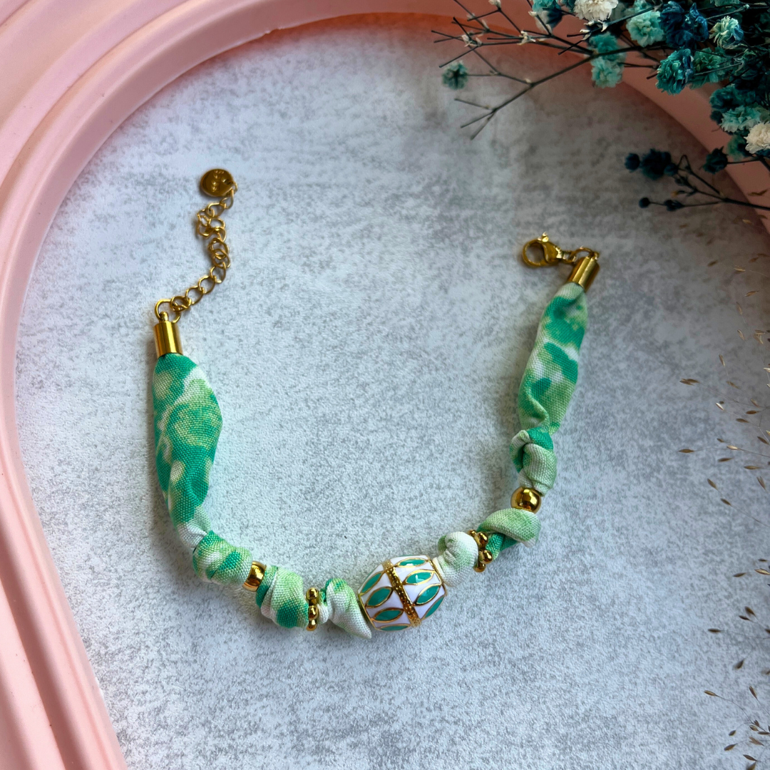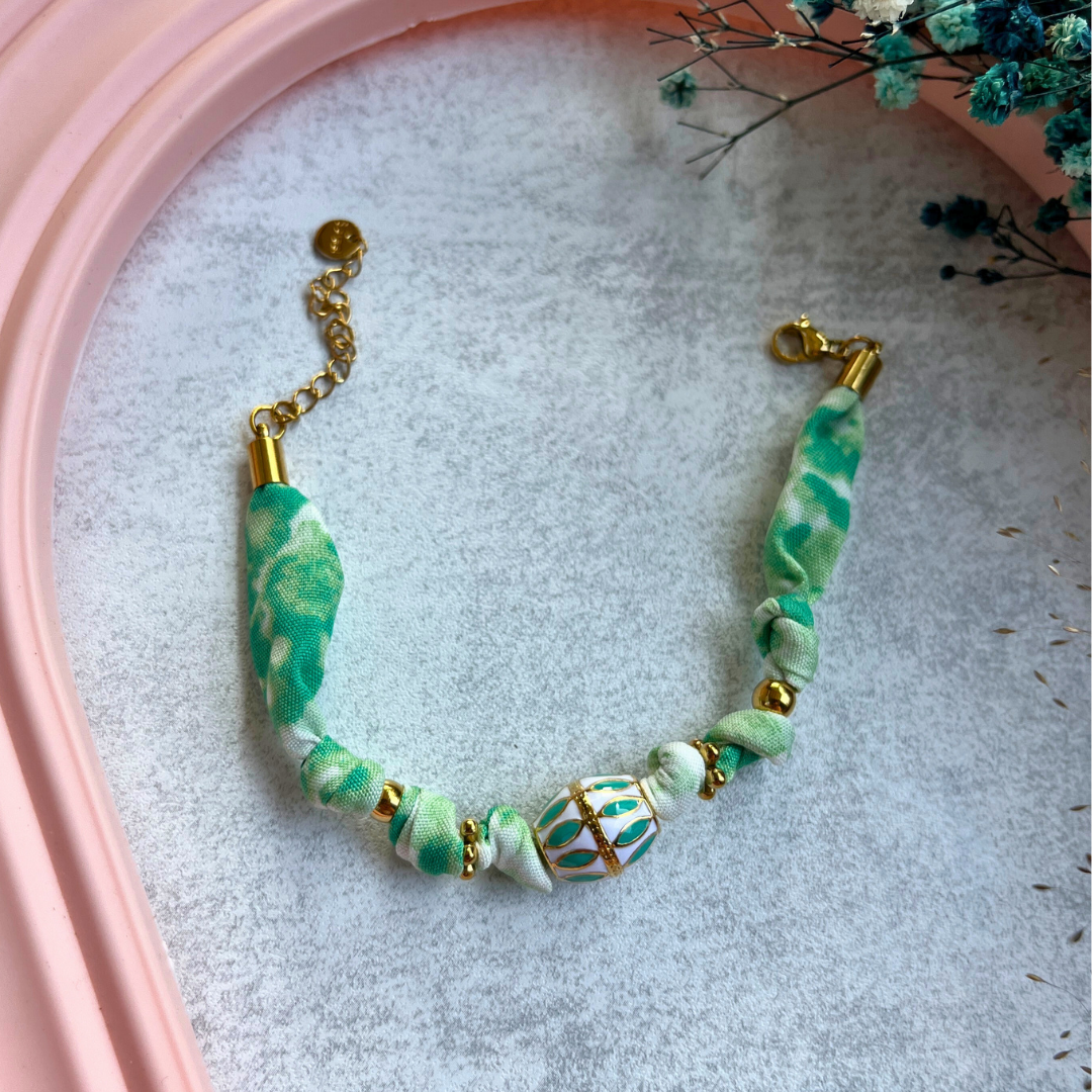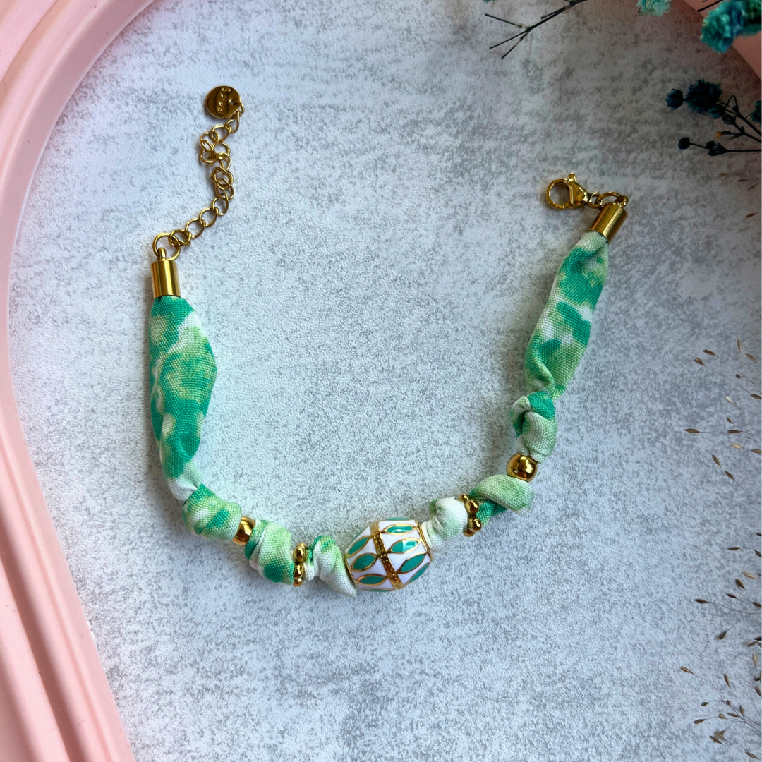 🔶 Ortadaki emaye desenli büyük boncuk ve altın rengi ara detaylar tasarıma sofistike bir hava katıyor.